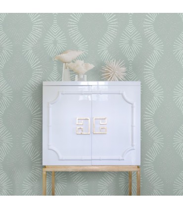 Dazzling details in a soft, easy to live with palette. Beaded and matte brushstrokes create an abstract ogee pattern over a metallic seafoam canvas. Feliz is an unpasted, non woven wallpaper.