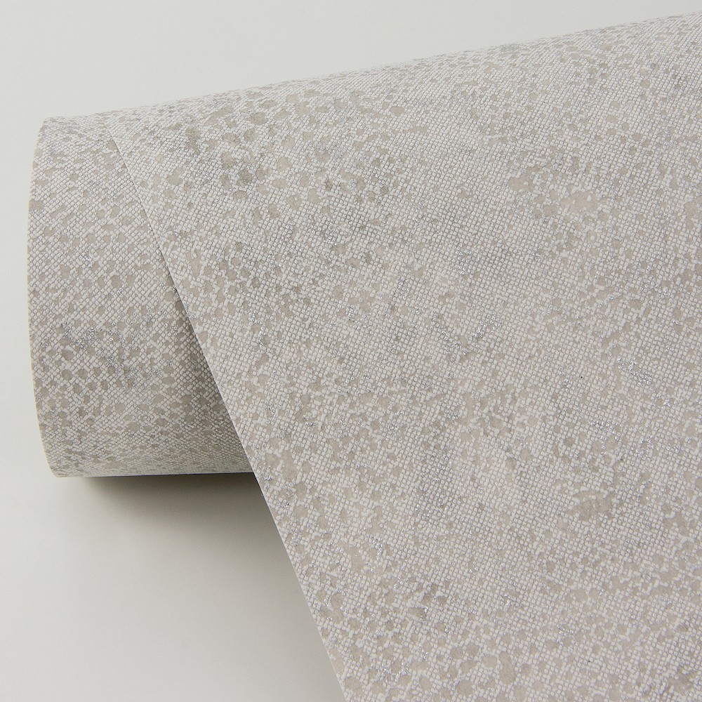 Add a touch of untamed sophistication to your home with this elegant, small-scale snakeskin wallpaper. The matte grey background is overlaid with tiny silver scales and infused with both rough texture and soft shimmer. Clerici is an unpasted, foil on non woven wallpaper.