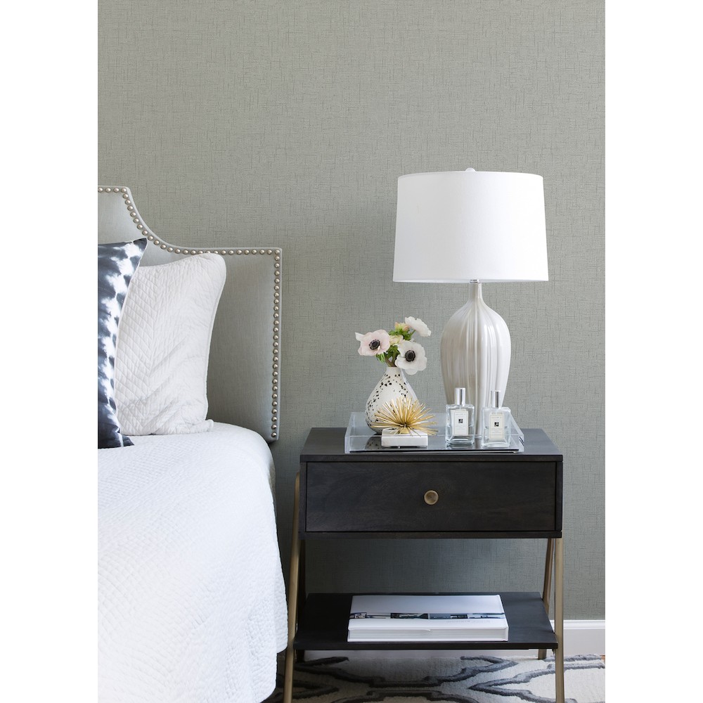Add elegant and timeless dimension to your walls with this gorgeous faux linen wallpaper. The light grey mimics the tight weave of fine linens and is accented by crosshatched areas of silver-grey. Bentley is an unpasted, acrylic coated wallpaper.