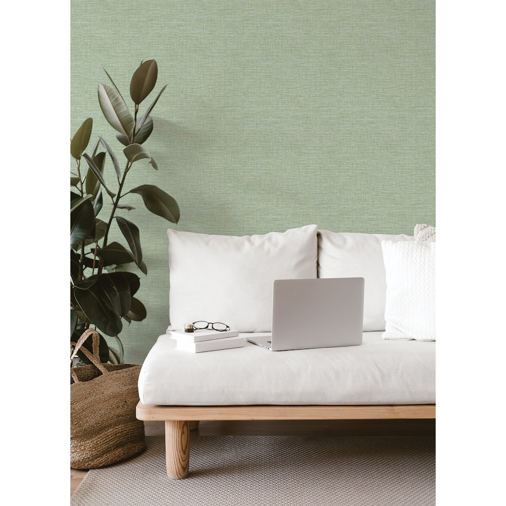 Reinvigorate your interiors with the soft hues and subtle texture of this wallpaper. A blend of light greens are woven together to create this timeless, faux fabric accent. Exhale is an unpasted, non woven wallpaper.