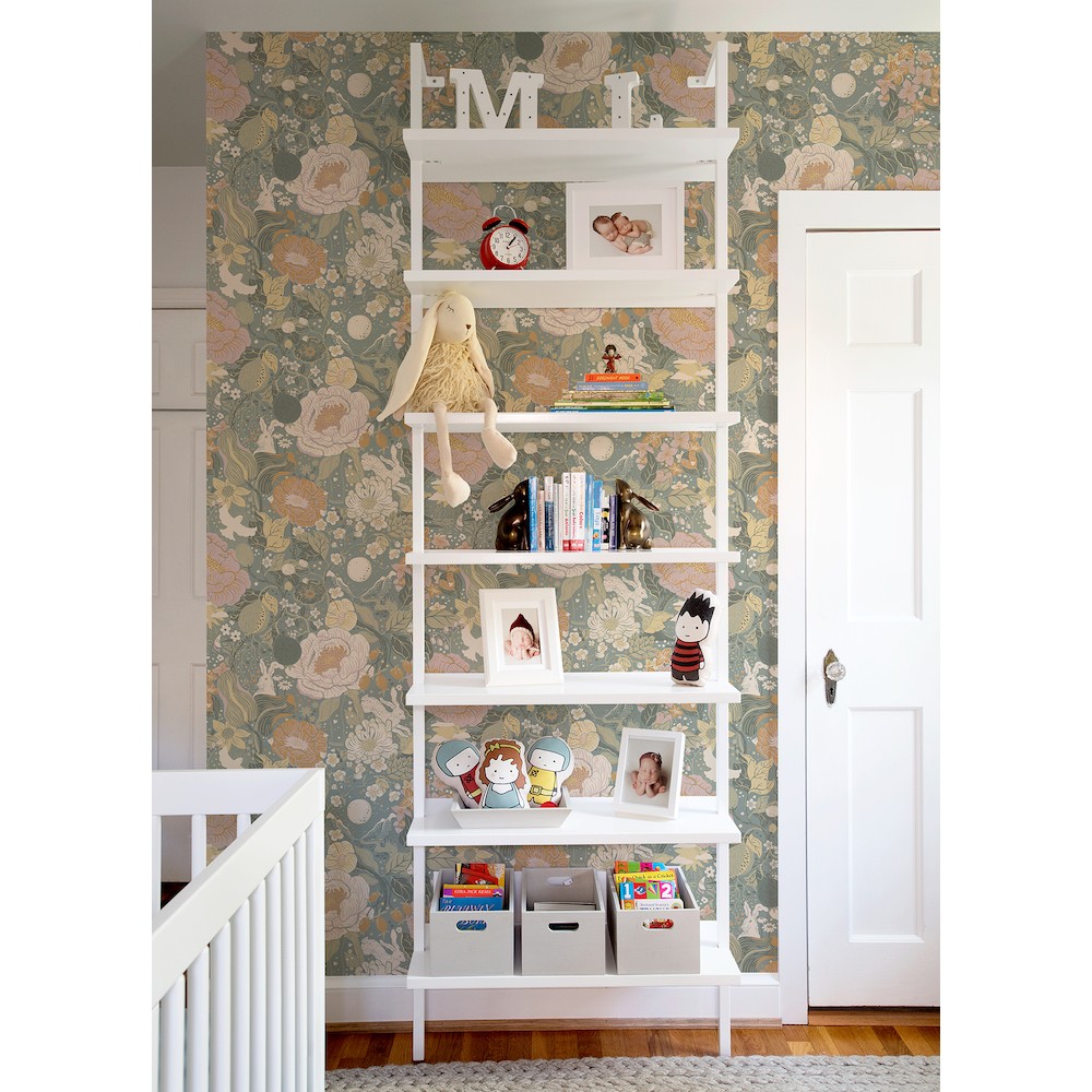 A medley of summertime memories are hidden within this gorgeous botanical design! Tucked between the voluptuous rosehips are swings, sailing trips, mountain hikes, bunnies, and birds, all inked in warm pink, orange, yellow, sage, and dark green against a blue-grey backdrop. Växa is an unpasted, non woven wallpaper.