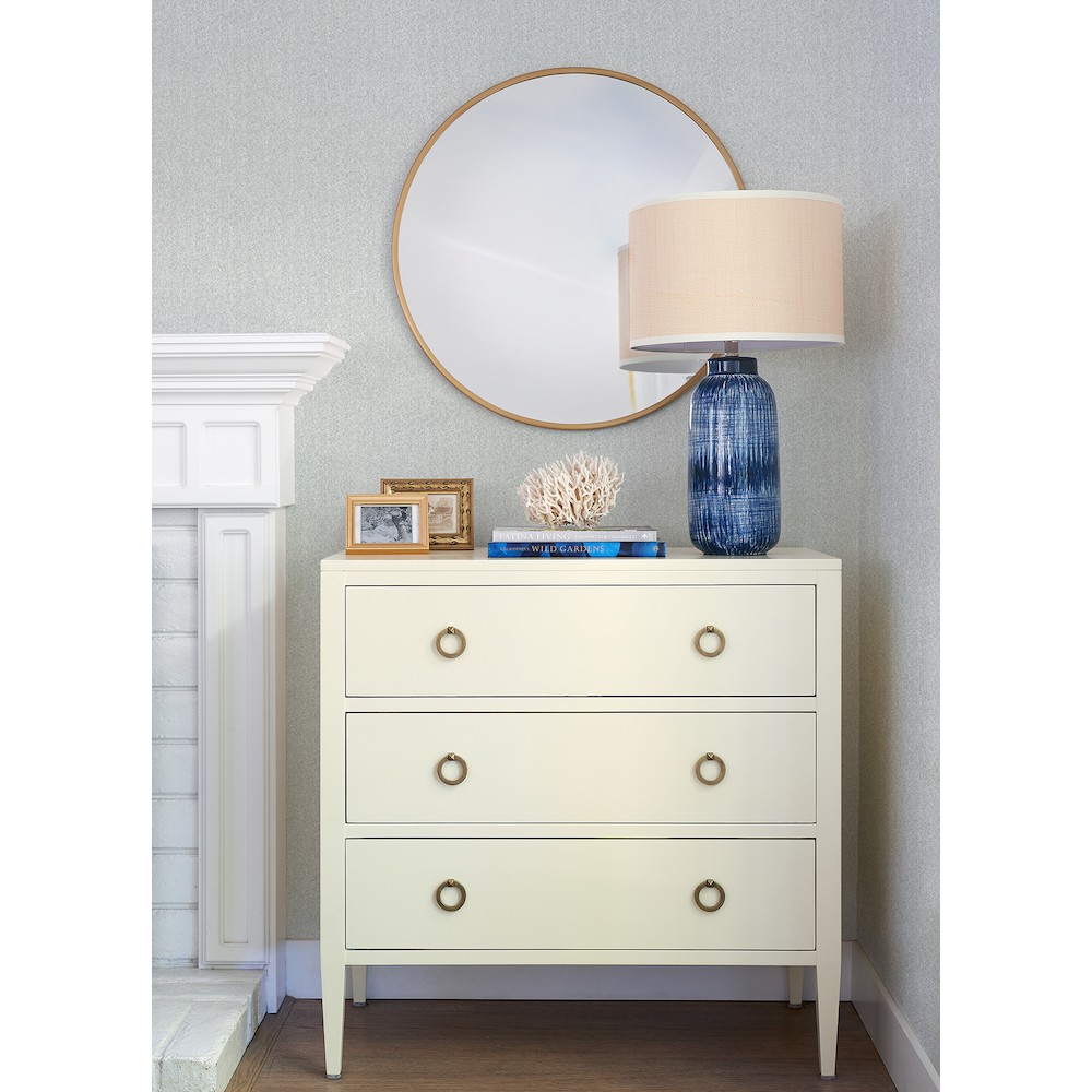 Bedeck your walls with the classic sophistication of tweed with this faux fabric wallpaper. The delicate chevron pattern is inked in shades of grey with hits of silvery-blue and features light distressing and raised ink detailing. Ashbee is an unpasted, non woven wallpaper.