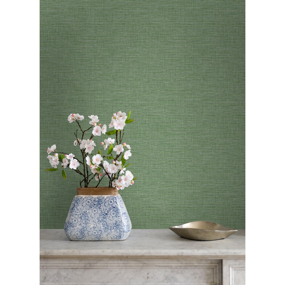 Delight in the subtle sophistication of this verdant textured wallpaper. Rich green hues are delicately woven together, raised inks adding a tactile element to this timeless design. Exhale is an unpasted, non woven wallpaper.