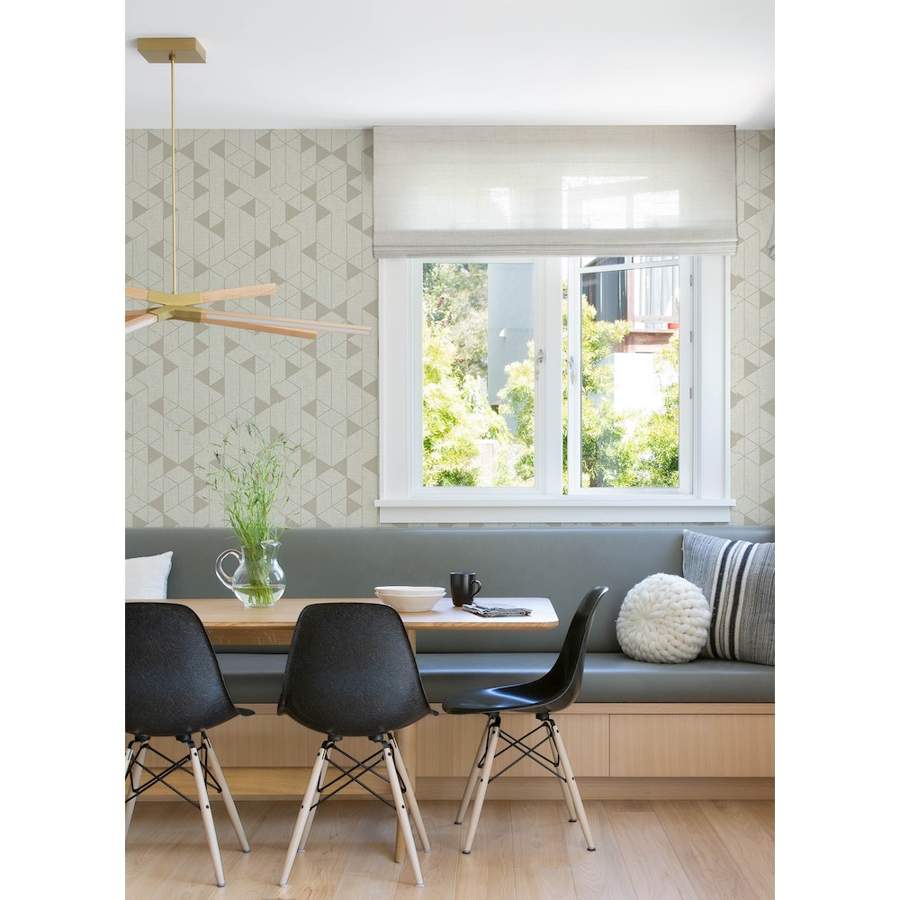 This timeless geometric design offers great depth. Not only do the soft brown shapes and outlines offer a subtle 3D effect, but the warm creamy-beige faux linen backdrop adds an additional layer. Fairbank is an unpasted, non woven wallpaper measuring 20.5 inches wide by 33 feet long, covering approxiamately About 56.4 square feet square feet per roll