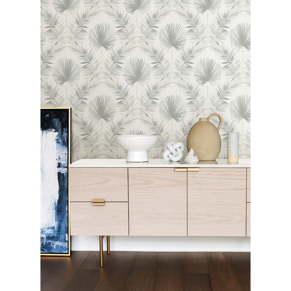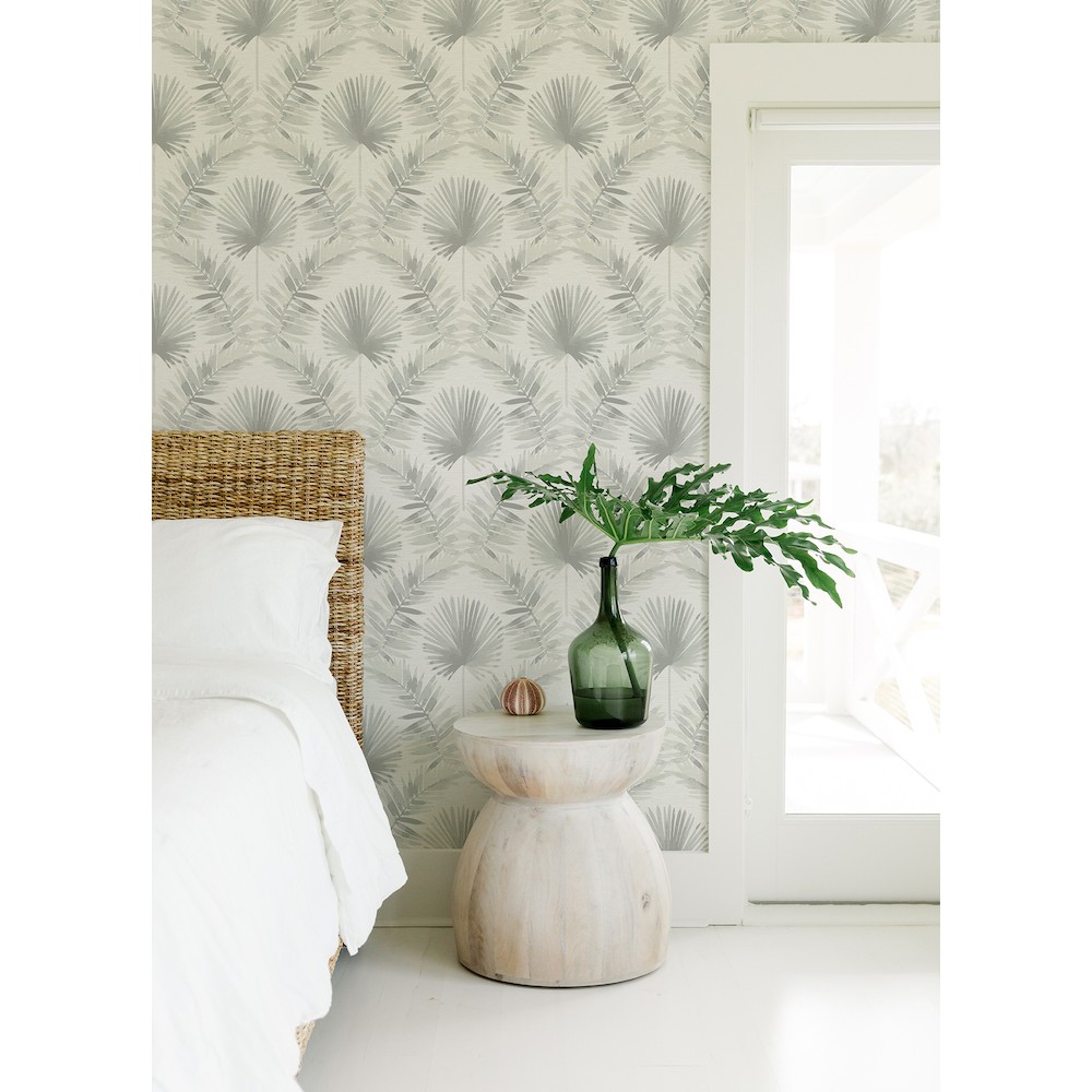 Revitalize your interiors with this soothing tropical design. A central fan palm is framed by curling fronds, all painted in shades of rich blue against a cream backdrop imbued with woven detailing. Calla is an unpasted, non woven wallpaper.