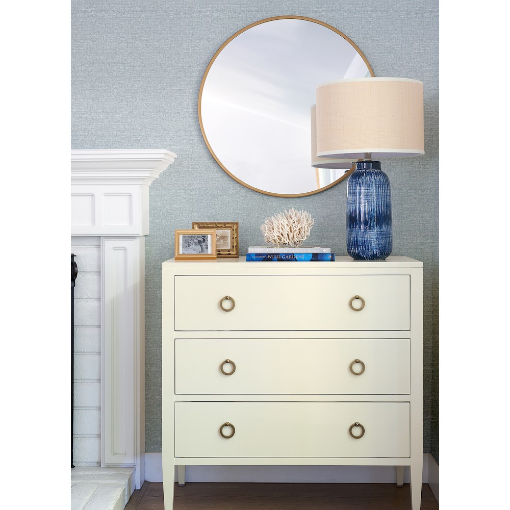 Soft color is made more complex with the textured detailing of this soothing design. Lines of blue raised inks form a basketweave pattern along a pale blue faux grasscloth backdrop. Minerva is an unpasted, non woven wallpaper.