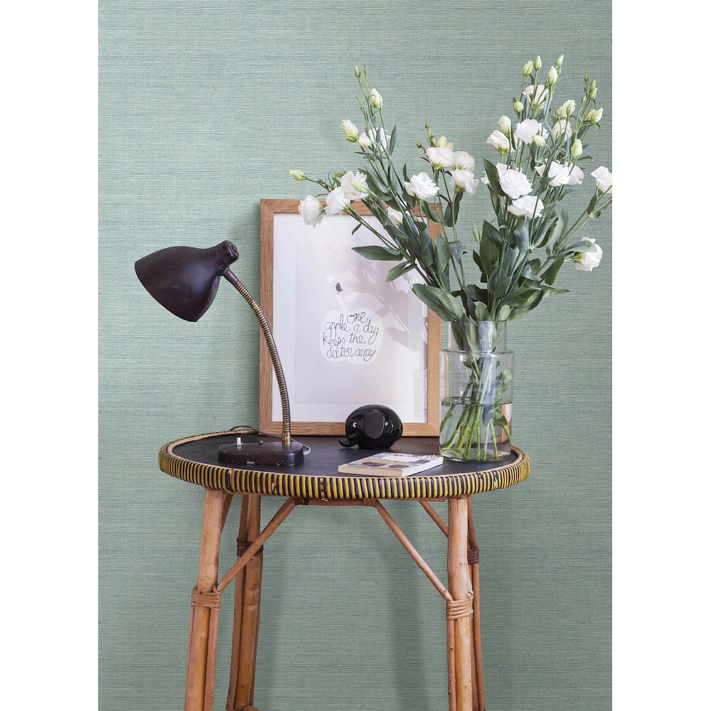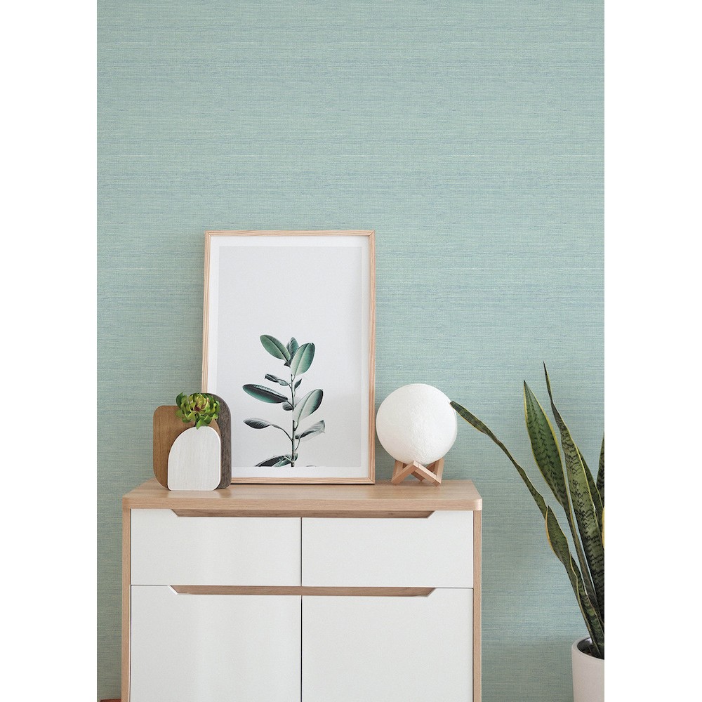 The cool color palette of this faux grasscloth wallpaper brings modern sophistication to your interiors. The blend of aqua, light blue, and subtle green is accented with raised inks that add texture to this simple design. Agave is an unpasted, non woven wallpaper measuring 20.5 inches wide by 33 feet long, covering approxiamately About 56.4 square feet square feet per roll