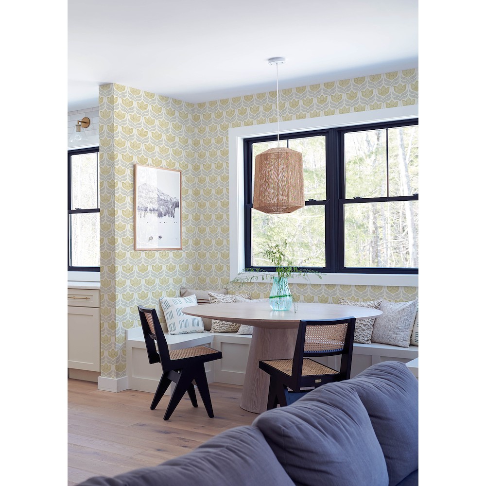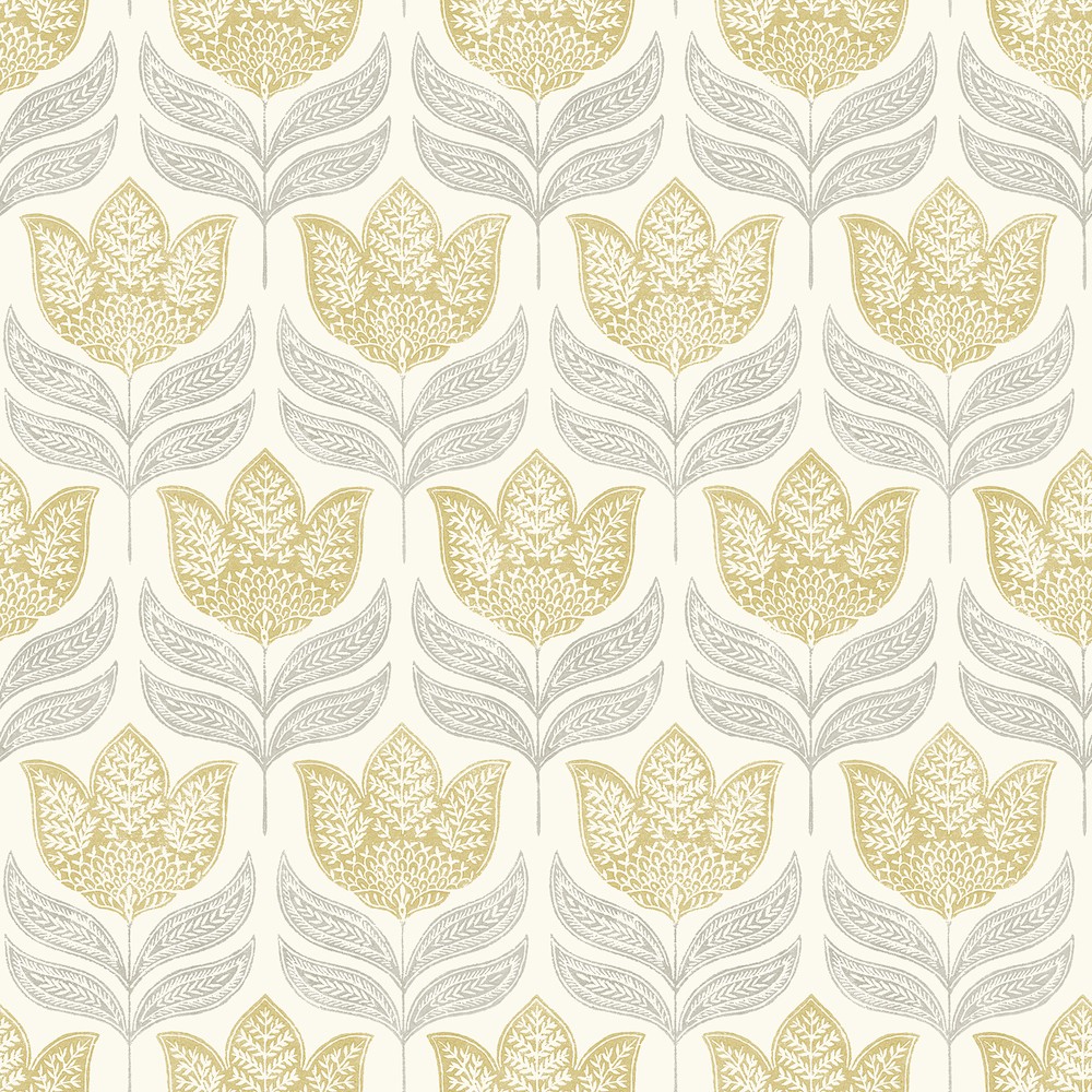 This charming floral wallpaper features mustard and grey block printed tulips embellished with white botanical detailing Cathal is a prepasted, sure strip wallpaper measuring 20.5 inches wide by 33 feet long, covering approximatelyAbout 56.4 square feet per roll