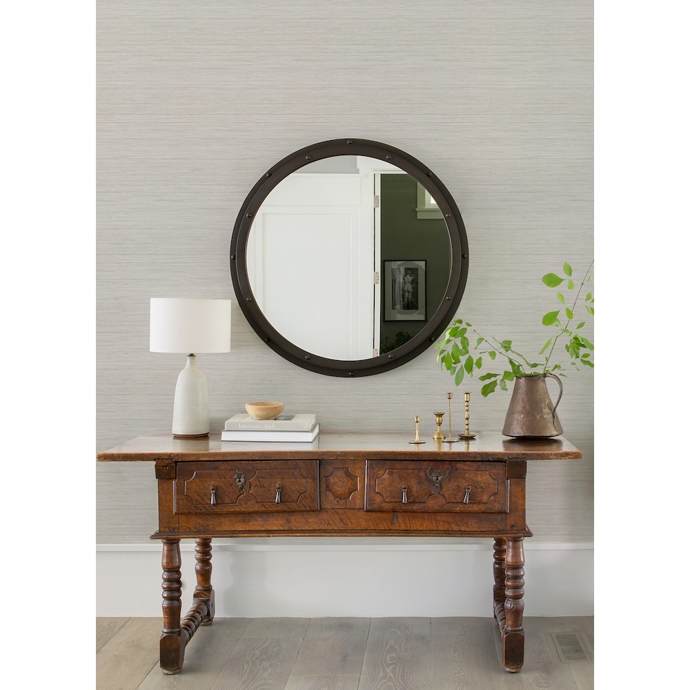 Soft coloring and subtle striped detailing make this faux grasscloth exceptional. The woven look is replicated with a touches of pale grey and silver against white. Barnaby is an unpasted, non woven wallpaper measuring 20.5 inches wide by 33 feet long, covering approximately 56.4 square feet per roll.