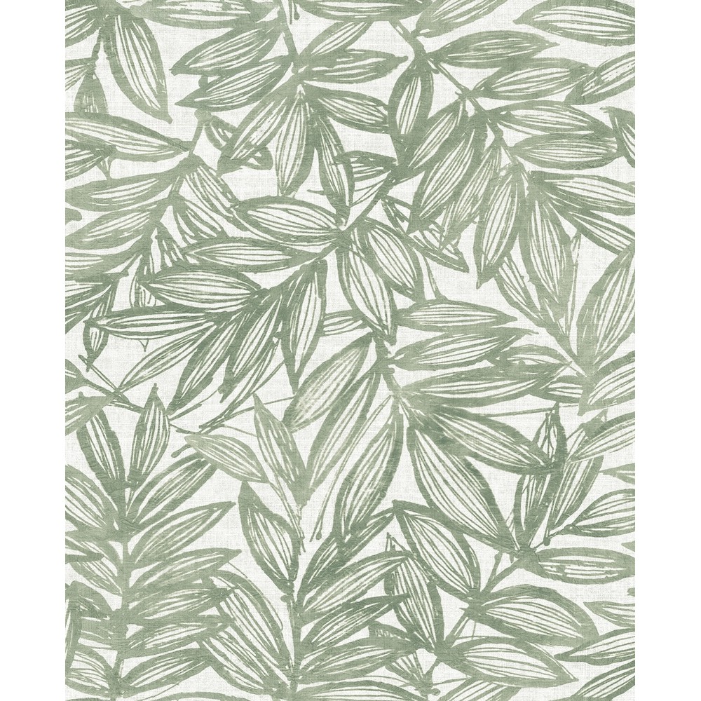 Enjoy the restful beauty of nature with this movement-filled botanical wallpaper. Artistically illustrated leaves are layered together and inked in rich sage along a cream linen-textured backdrop. Rhythmic is an unpasted, non woven wallpaper measuring 20.5 inches wide by 33 feet long, covering approximately 56.4 square feet per roll.