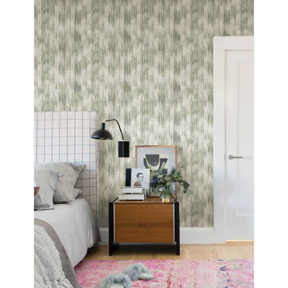 This artistic abstraction of shibori dye is given extra depth with textural detailing. Rich greens drip haphazardly along a white backdrop, with vertical ribbing adding both a tactile element while enhancing its sense of movement. Marvel is an unpasted, non woven wallpaper measuring 20.5 inches wide by 33 feet long, covering approximately 56.4 square feet per roll.