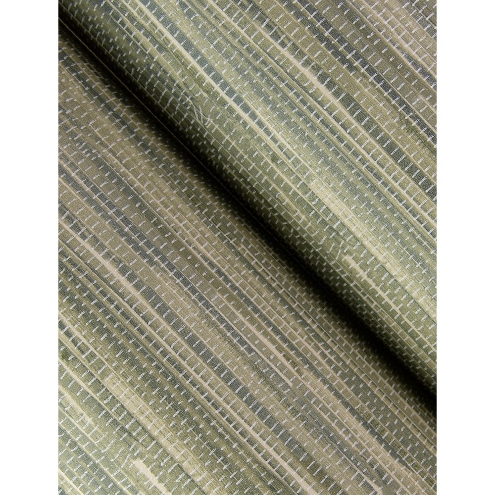 A replica of high-end grasscloth, this design features wide bands, knotted details, and prominent raised ink stitching. Featured here in a blend of neutrals and cool greens. Exhale is an unpasted, non woven wallpaper measuring 20.5 inches wide by 33 feet long, covering approximately 56.4 square feet per roll.