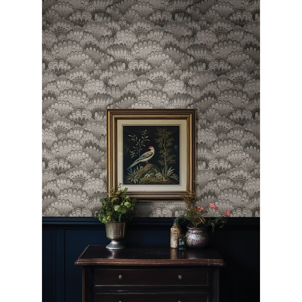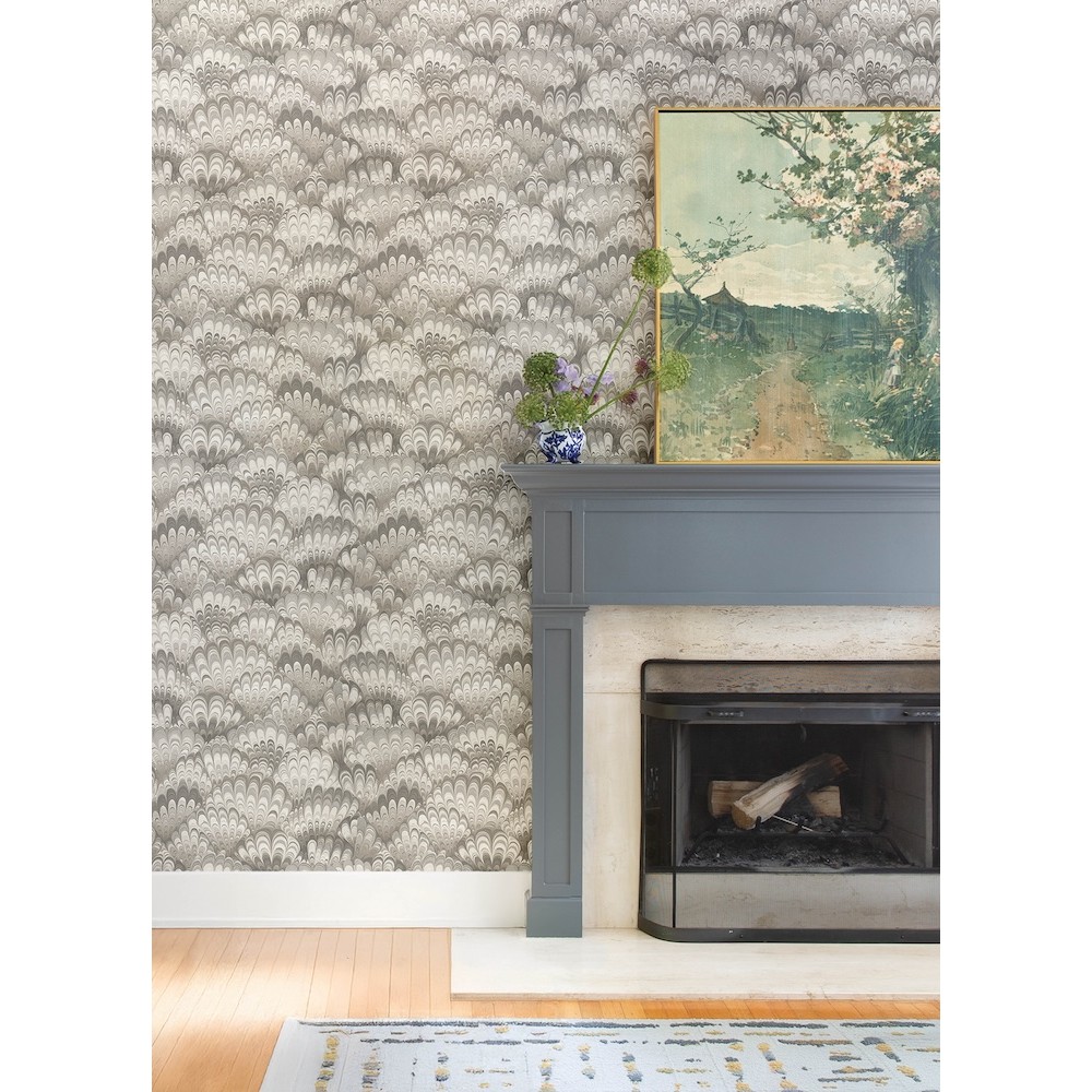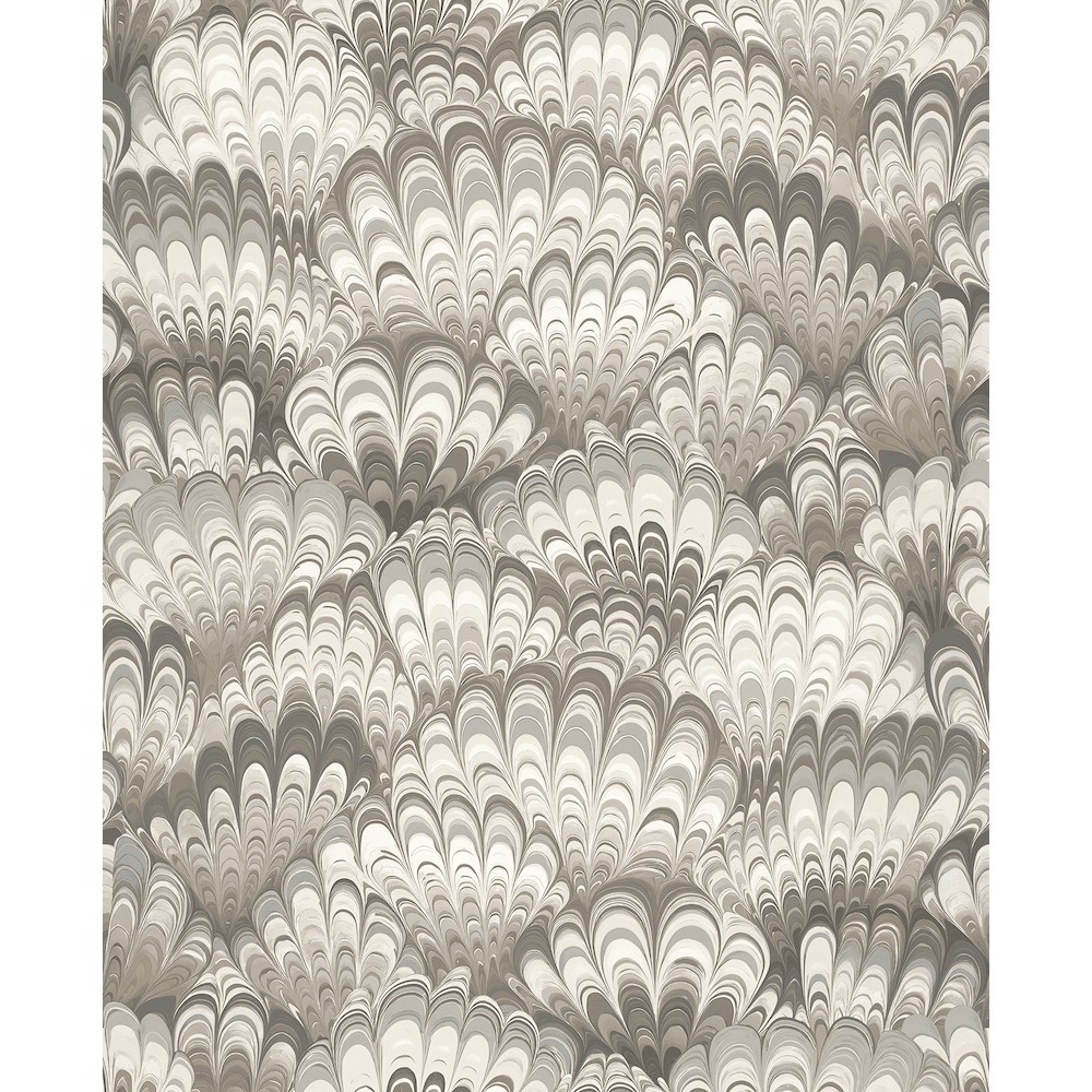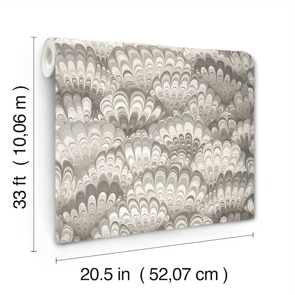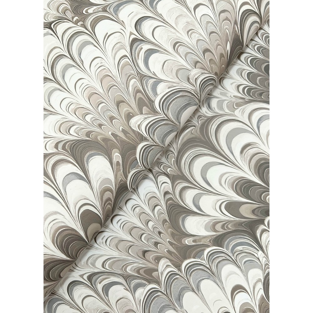 This compelling wallpaper perfectly captures the look of artisan-made marbled paper in a scale that flatters any living space. Featured here in shades of grey, taupe, and cream. Octavia is an unpasted, non woven wallpaper measuring 20.5 inches wide by 33 feet long, covering approximately 56.4 square feet per roll.