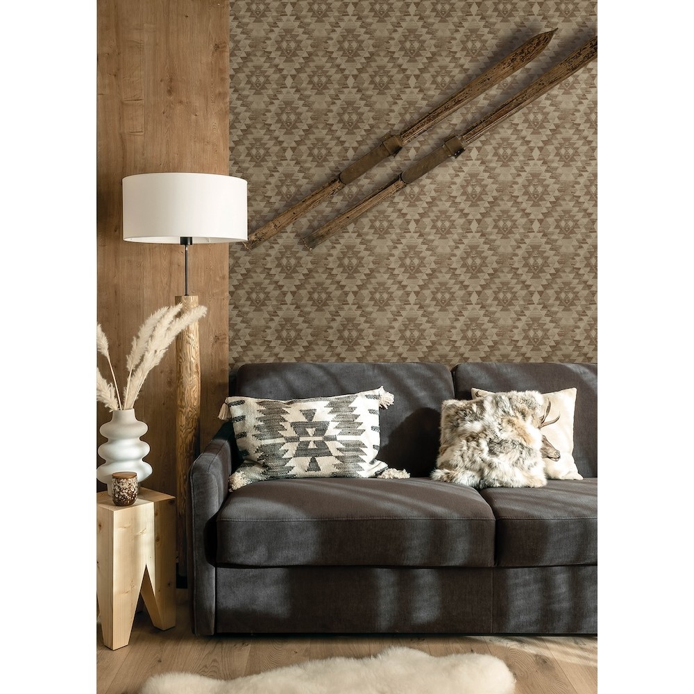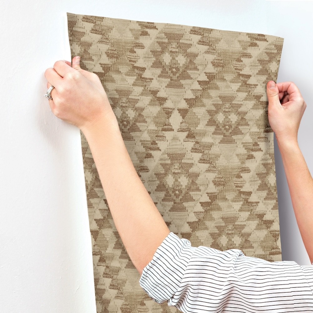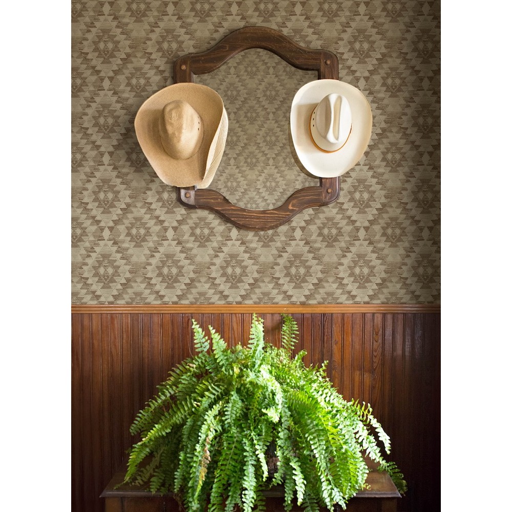 The picture of rugged comfort, this wallpaper perfectly captures the look of a hand-loomed blanket. Simply embellished with a western-inspired geometric design inked in shades of brown tinged with maroon, this wallpaper brings lived-in charm to your home. Montana is a prepasted, non woven wallpaper measuring 20.5 inches wide by 33 feet long, covering approximately About 56.4 square feet square feet per roll.