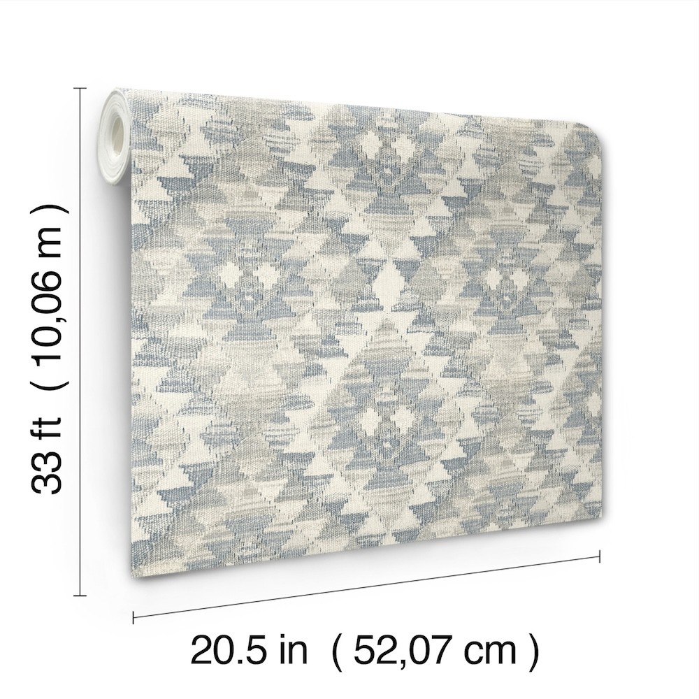 The picture of rugged comfort, this wallpaper perfectly captures the look of a hand-loomed blanket. Simply embellished with a western-inspired geometric design inked in shades of denim blue and white, this wallpaper brings lived-in charm to your home. Montana is a prepasted, non woven wallpaper measuring 20.5 inches wide by 33 feet long, covering approximately About 56.4 square feet square feet per roll.