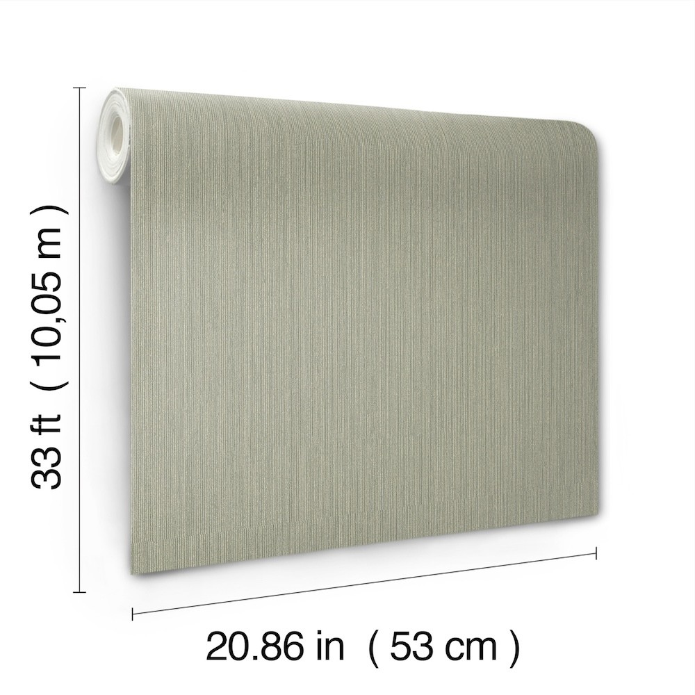 The textile inspired wallpaper Midolin has a vertical woven structure that, when sunlight dances across the surface, reveals the subtle interplay between shadow and light along the wall. Seen here in olive. Midolin Vass is an unpasted, non woven wallpaper measuring 20.9 inches wide by 33 feet long, covering approximately 57.5 square feet per roll.