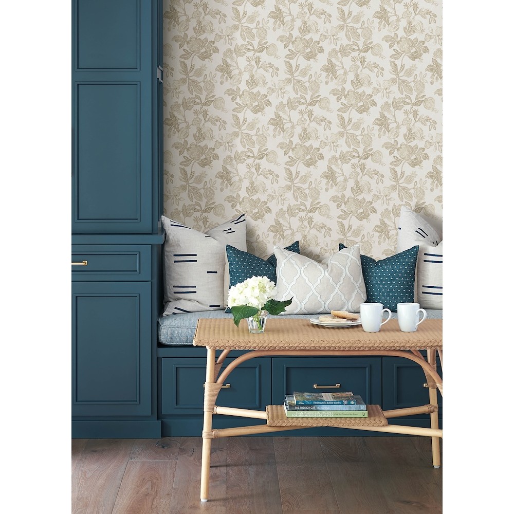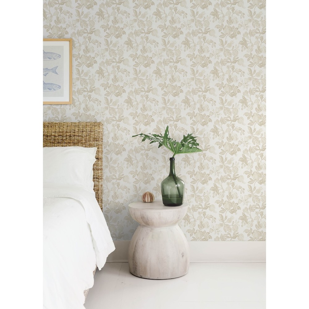 4172-27495 - Beach Rose Champagne Floral Fruits Wallpaper-Sea Salt by A Street