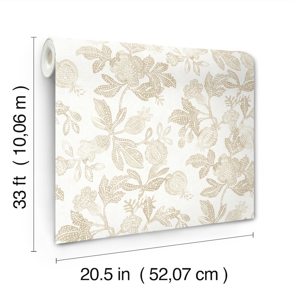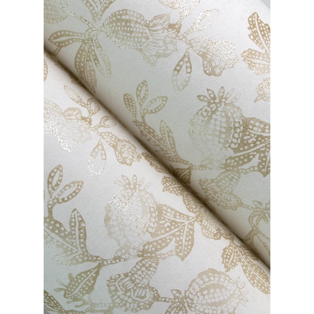 Beachside florals and fruits are artistically recreated as gorgeous trail wallpaper, inked in shades of pale, pearlescent gold and embellished with stippled detailing and tactile finishes. Beach Rose is an unpasted, non woven wallpaper measuring 20.5 inches wide by 33 feet long, covering approximately 56.4 square feet per roll.