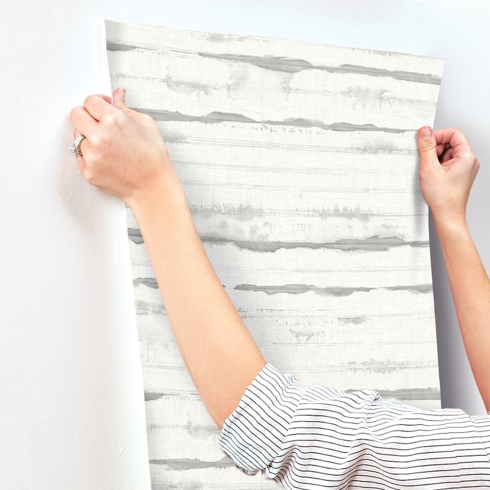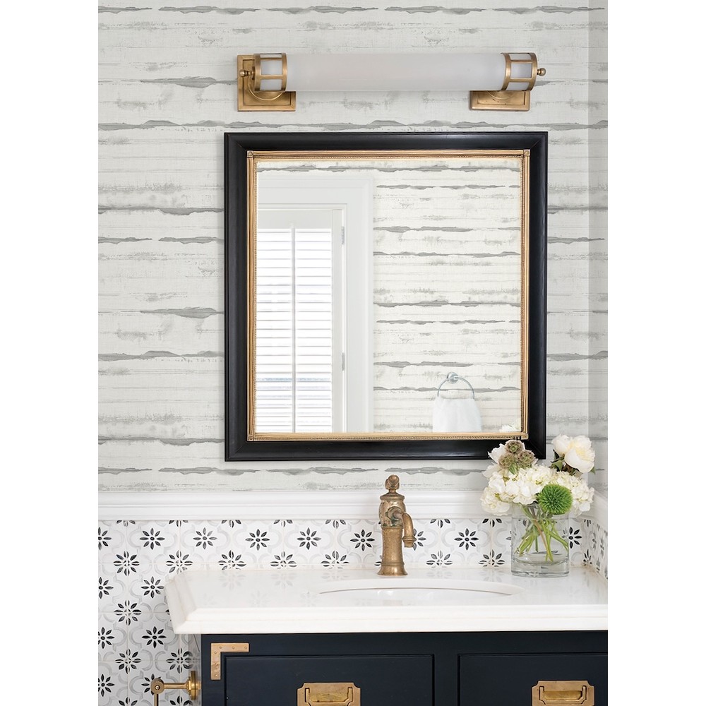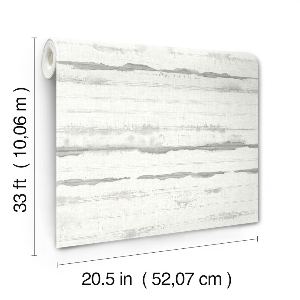 Faux linen and organic shibori detailing in cool grey ink makes this stripe wallpaper a masterclass in casual elegance. Destin is an unpasted, non woven wallpaper measuring 20.5 inches wide by 33 feet long, covering approximately 56.4 square feet per roll.