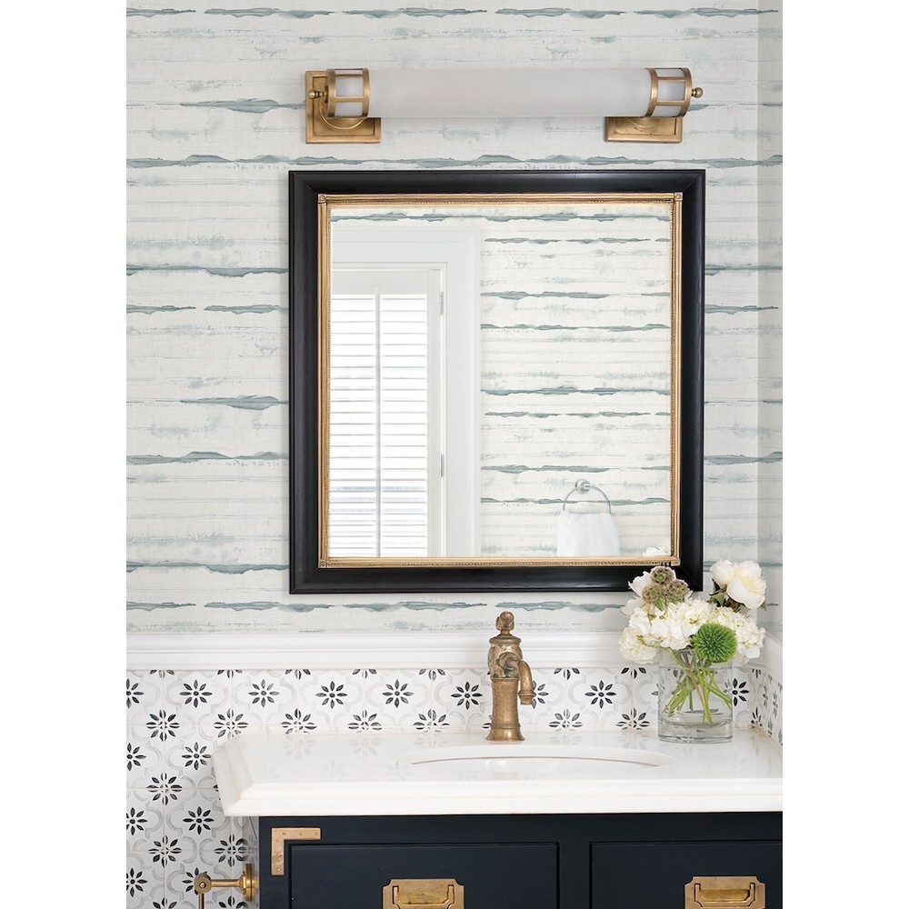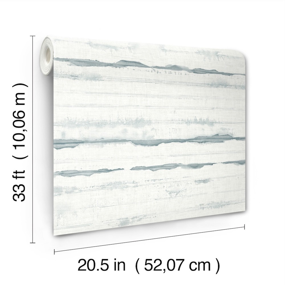 Faux linen and organic shibori detailing in faded teal ink makes this stripe wallpaper a masterclass in casual elegance. Destin is an unpasted, non woven wallpaper measuring 20.5 inches wide by 33 feet long, covering approximately 56.4 square feet per roll.