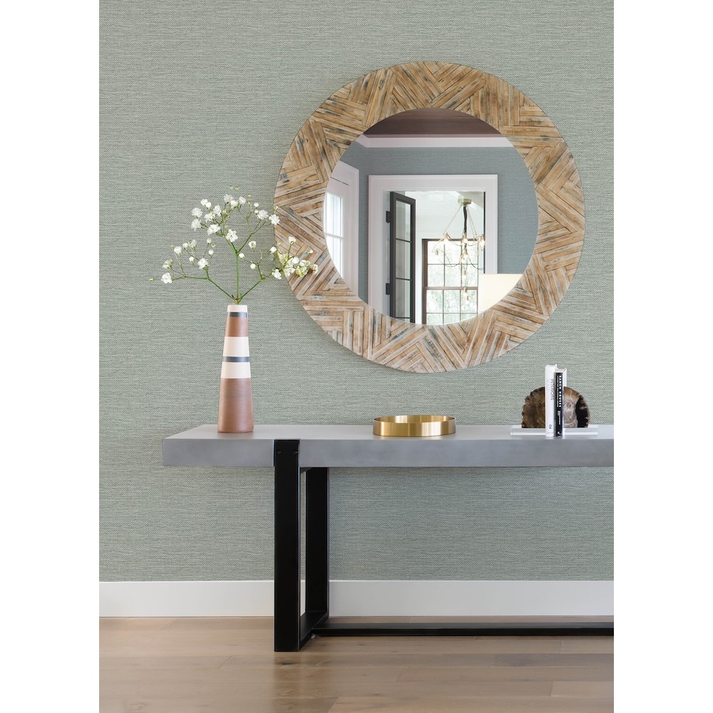 A perfect replication of natural wovens, this faux grasscloth wallpaper features wide strands, sage and aqua gradations, and raised ink tactility. Malin is an unpasted, non woven wallpaper measuring 20.5 inches wide by 33 feet long, covering approximately 56.4 square feet per roll.