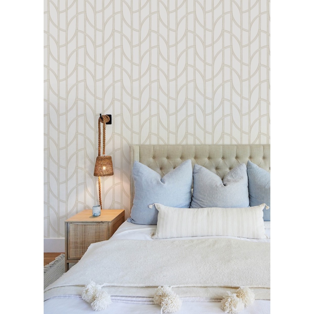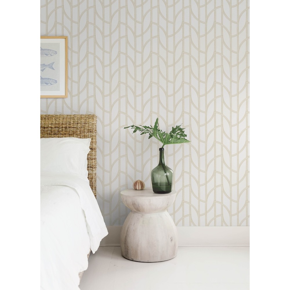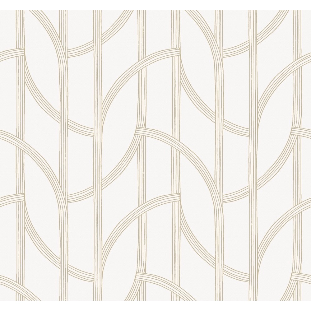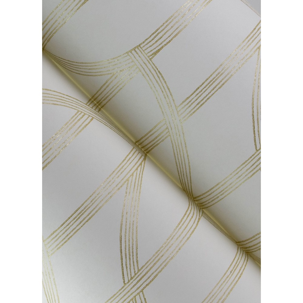 Reminiscent of rattan vines, these curving, golden poles add chic definition to any space. Salvo is an unpasted, non woven wallpaper measuring 27 inches wide by 27 feet long, covering approximately 60.8 square feet per roll.