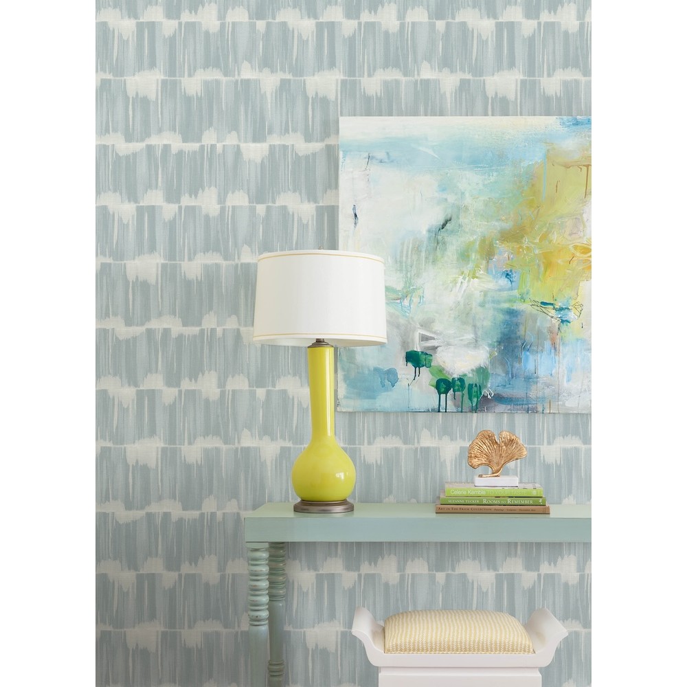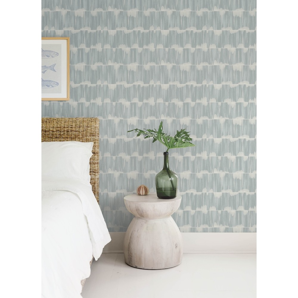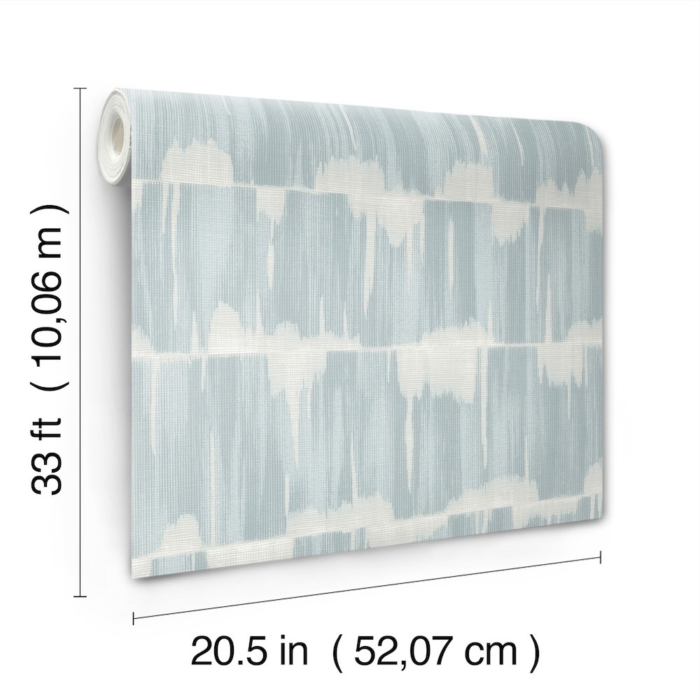 This dynamic wide stripe has it all: dimension, texture, and subtle pearlescent touches. A fan favorite design revitalized in a new colorway featuring soft shades of blue and white. Serendipity is an unpasted, non woven wallpaper measuring 20.5 inches wide by 33 feet long, covering approximately 56.4 square feet per roll.