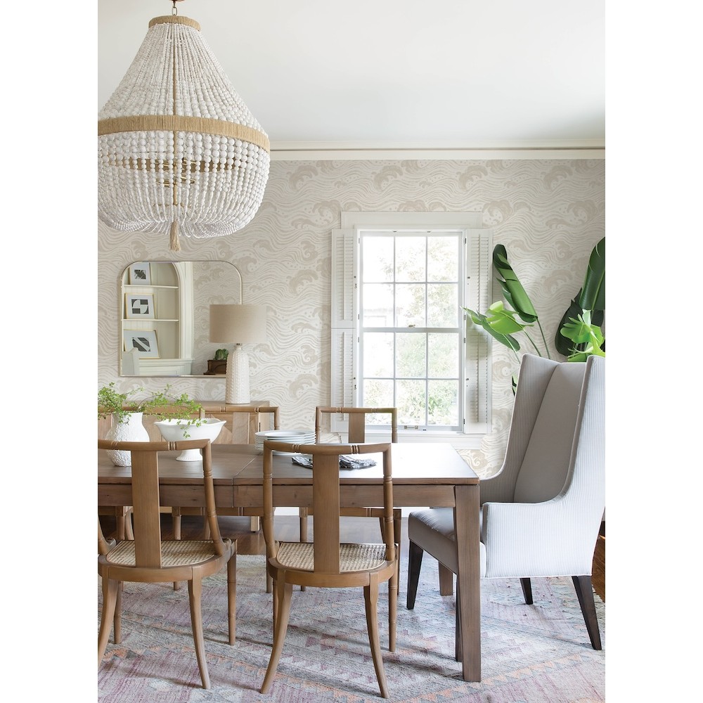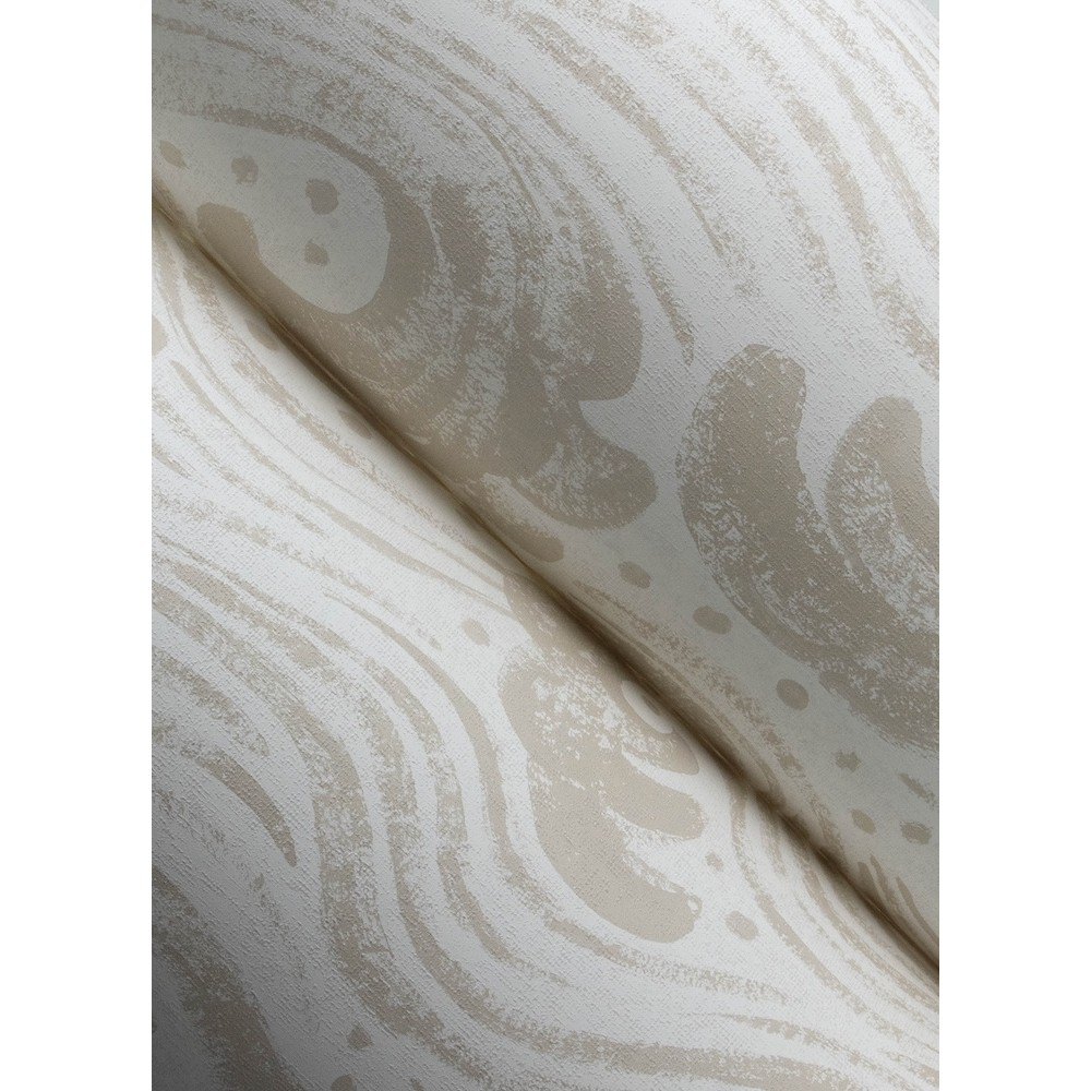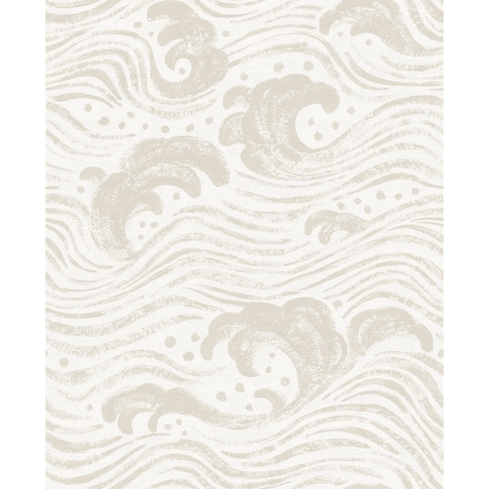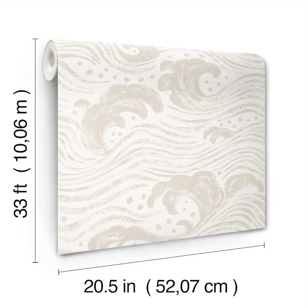 The powerful surge of the ocean is painted in a free-flowing, impressionistic style, featuring cool beige against white. Swell is an unpasted, non woven wallpaper measuring 20.5 inches wide by 33 feet long, covering approximately 56.4 square feet per roll.