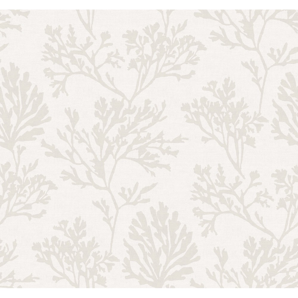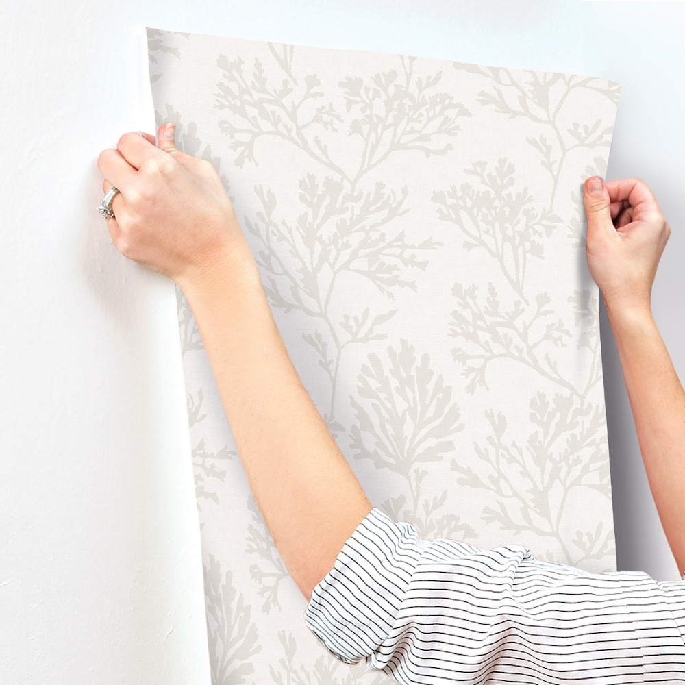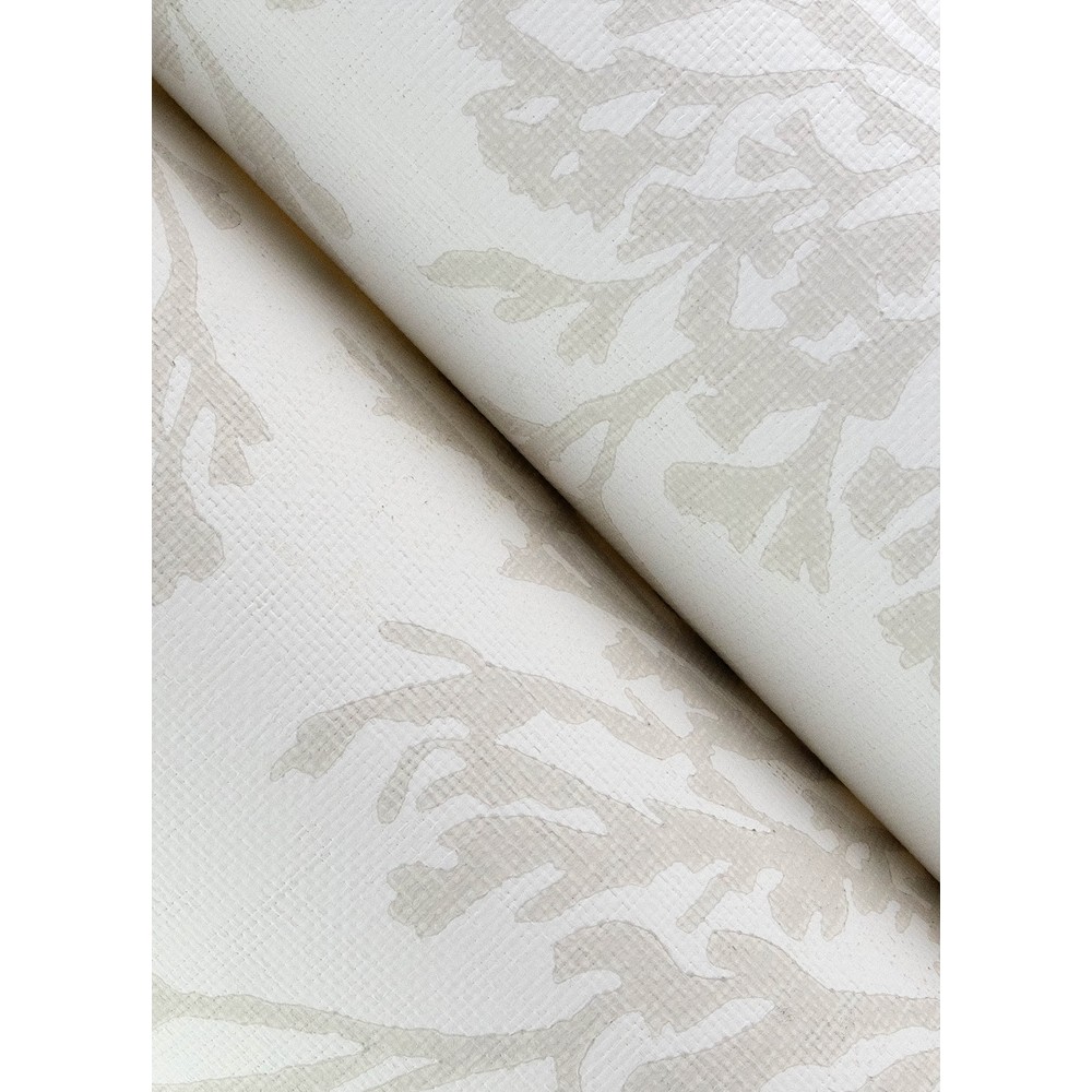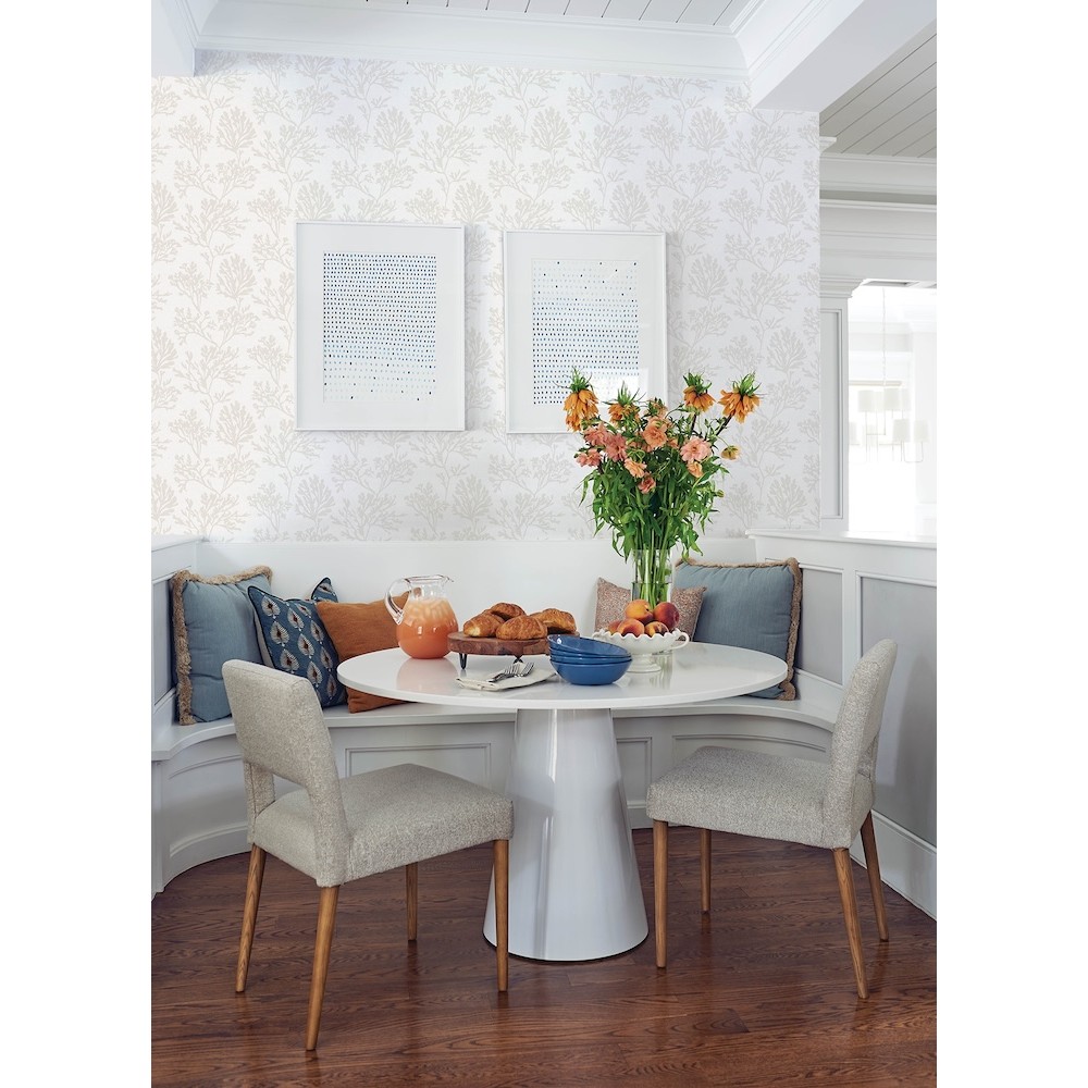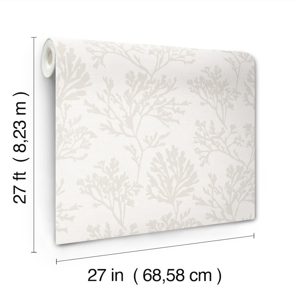 Coastal luxury at its finest: chic coral silhouettes are printed in pale grey against white on a densely woven yet delicate paper weave. Tortuga is an unpasted, paper weave grasscloth wallpaper measuring 27 inches wide by 27 feet long, covering approximately 60.8 square feet per roll.