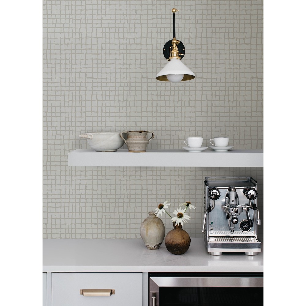 The hand-drawn netting of Albin offers modern dimension elevated by tactile detailing. Featured here with rich beige linework against cream. Albin is an unpasted, non woven wallpaper measuring 20.5 inches wide by 33 feet long, covering approximately About 56.4 square feet square feet per roll.