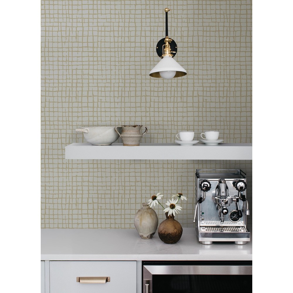 The hand-drawn netting of Albin offers modern dimension elevated by tactile detailing. Featured here with golden yellow linework against pearlescent white. Albin is an unpasted, non woven wallpaper measuring 20.5 inches wide by 33 feet long, covering approximately About 56.4 square feet square feet per roll.