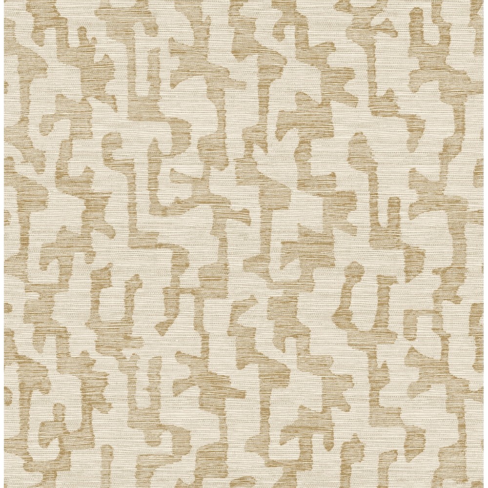 Faux grasscloth detailing adds depth and elegance to Cipher’s abstracted and maze-like forms. Featured here with golden brown shapes against a beige backdrop. Cipher is an unpasted, non woven wallpaper measuring 20.5 inches wide by 33 feet long, covering approximately About 56.4 square feet square feet per roll.