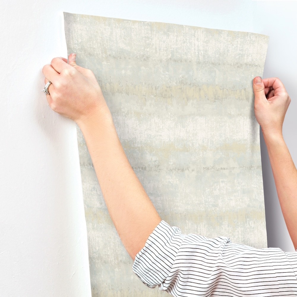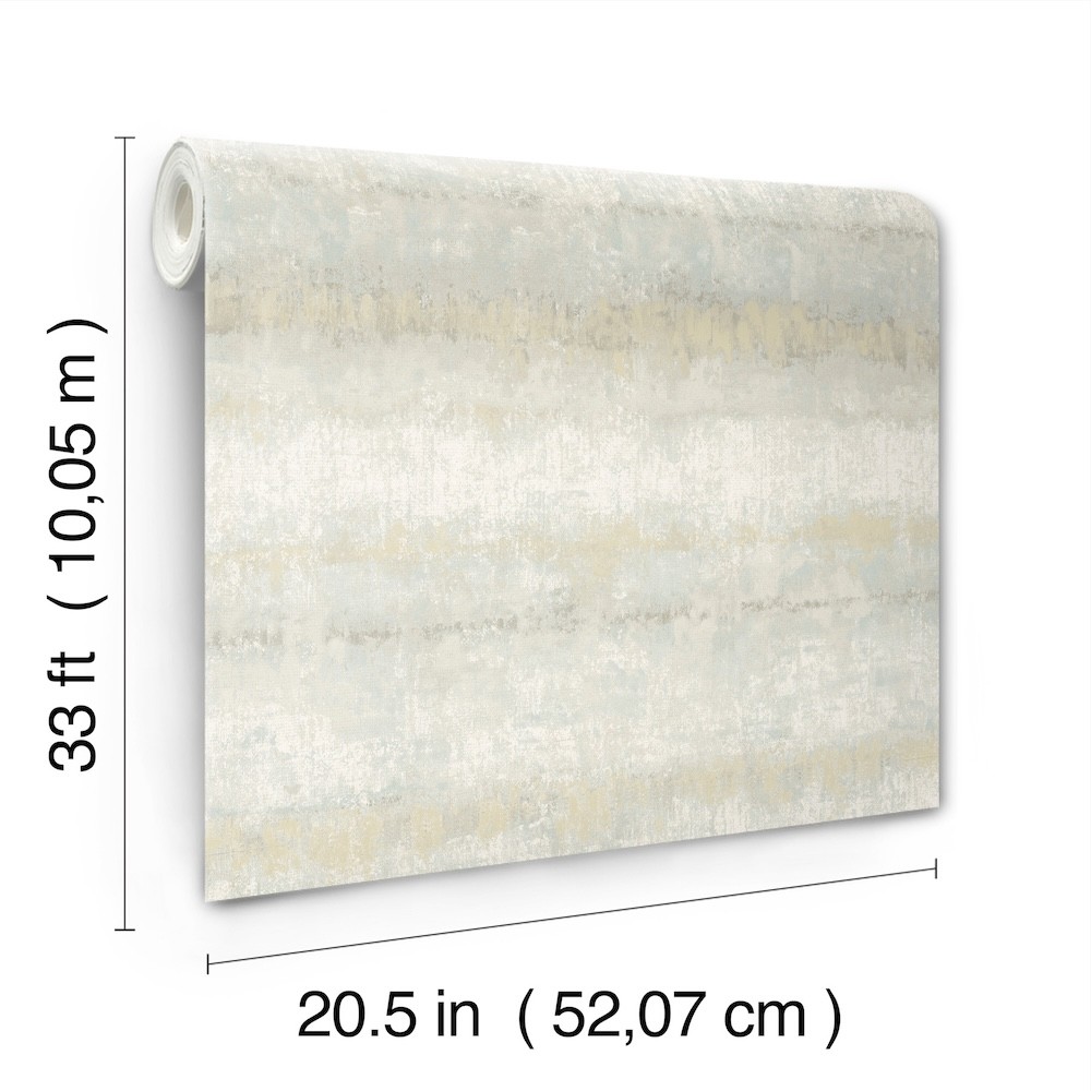 Morningtide’s modern and textural take on classic stripes is elevated with hints of metallic flair. Seen here in pale grey, aqua, and white with metallic champagne accents. Morningtide is an unpasted, non woven wallpaper measuring 20.5 inches wide by 33 feet long, covering approximately About 56.4 square feet square feet per roll.