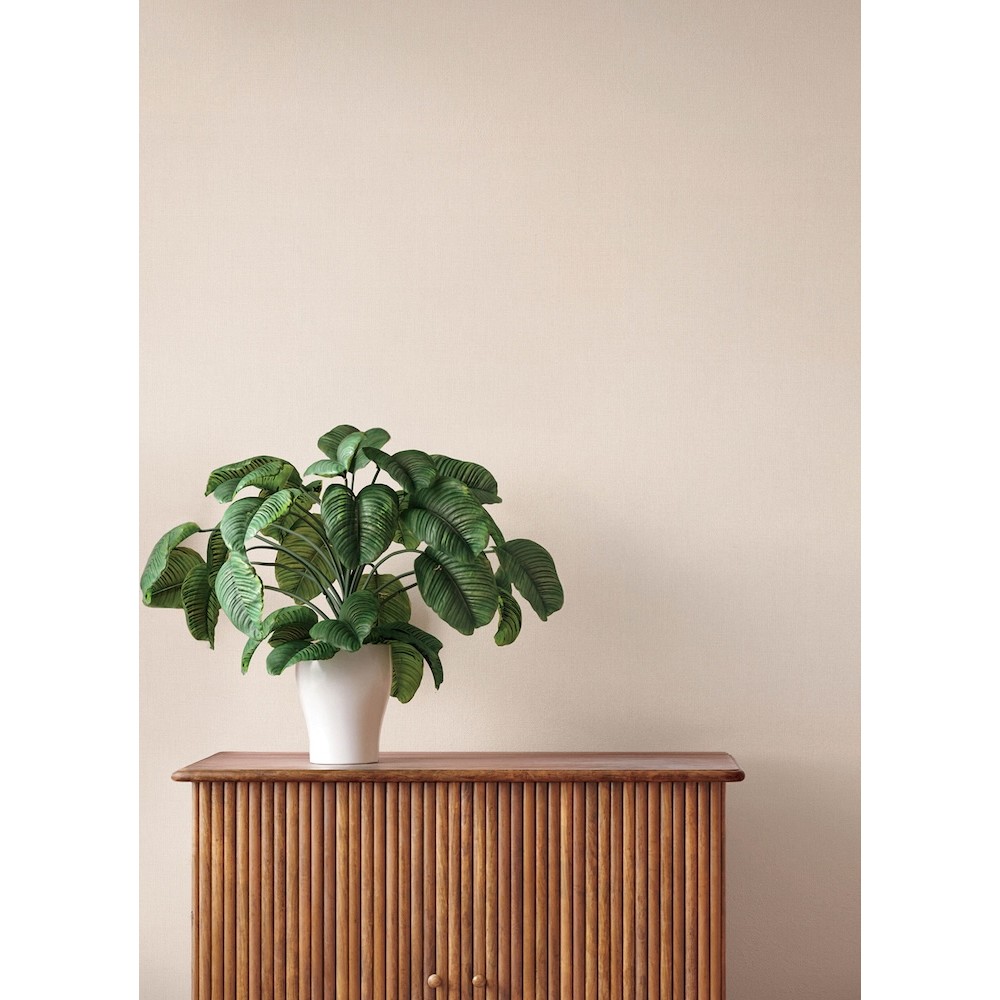 Solid color is subtly enhanced by a tactile, woven texture in this versatile wallpaper. Seen here in palest blush. Naim is an unpasted, vinyl on non woven backing wallpaper measuring 20.9 inches wide by 33 feet long, covering approximately 57.5 square feet per roll.