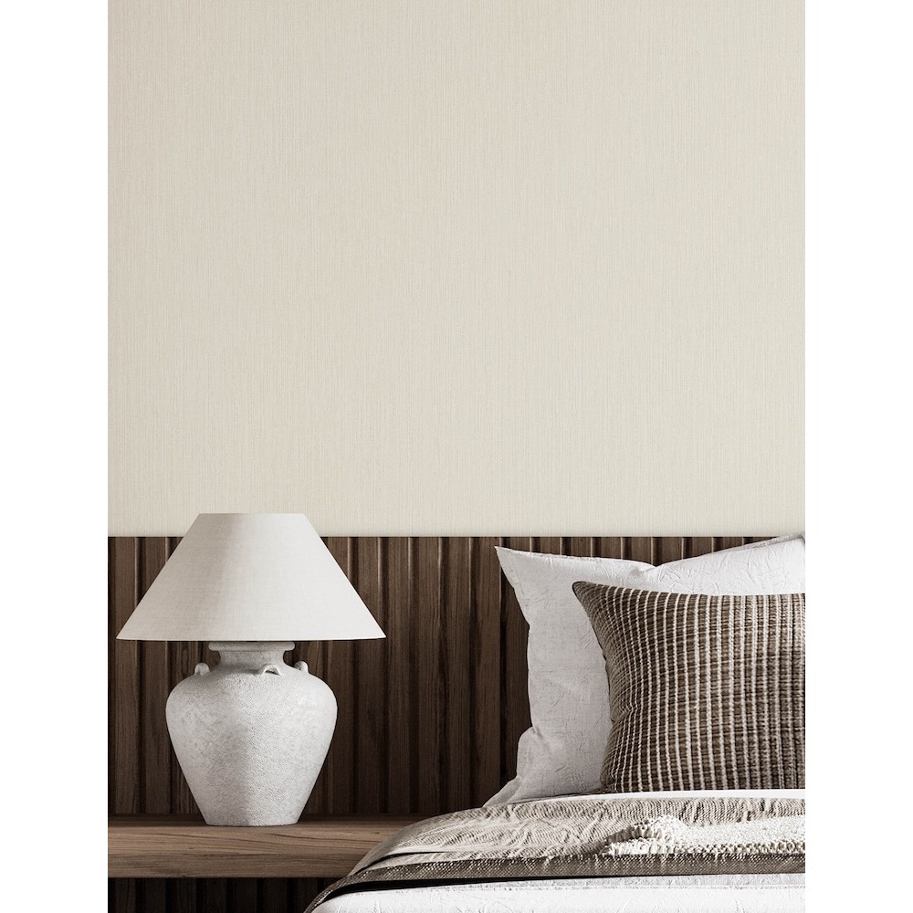 This textured wallpaper's dense collection of thin, vertical striations offers chic dimension and timeless character. Featured here in a blend of cream and palest grey. Elijah is an unpasted, non woven wallpaper measuring 20.9 inches wide by 33 feet long, covering approximately 57.5 per roll.
