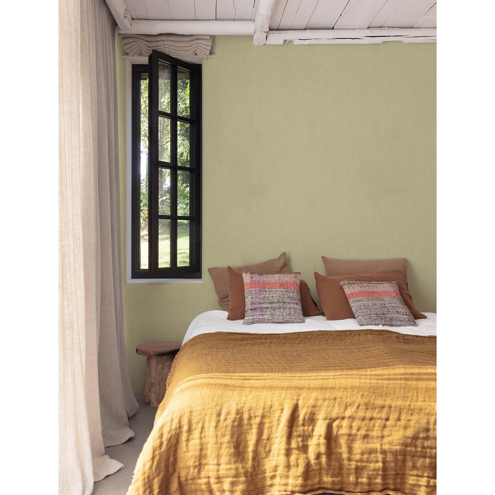 This textured wallpaper's dense collection of thin, vertical striations offers chic dimension and timeless character. Featured here in a blend of sage, moss, and white. Elijah is an unpasted, non woven wallpaper measuring 20.9 inches wide by 33 feet long, covering approximately 57.5 per roll.