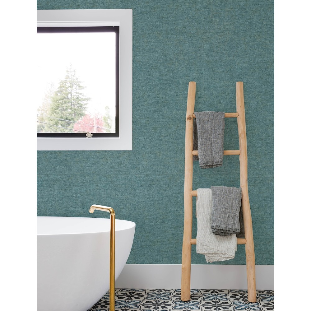 Bring subtle dimension to any space with the distressed details and delicate, horizontal striping of this textured wallpaper. Seen here in teal with hints of moss. Tansy is an unpasted, vinyl on nonwoven wallpaper measuring 20.9 inches wide by 33 feet long, covering approximately 57.5 per roll.