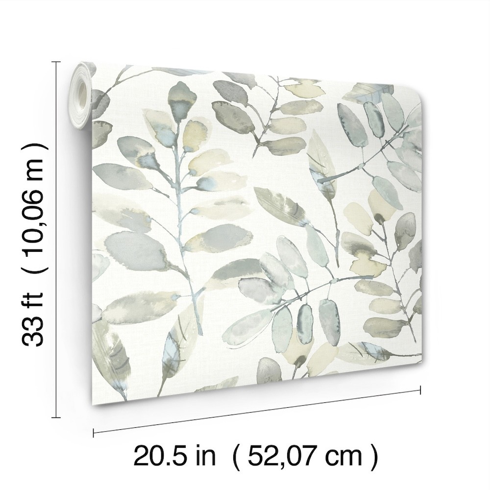 Bring the outdoors in with this serene botanical design featuring lush fronds inked in grey, taupe, and blue watercolors against a cream backdrop imbued with a loose, linen weave. Pinnate is a prepasted, non woven blend wallpaper measuring 20.5 inches wide by 33 feet long, covering approximately 56.4 square feet per roll.