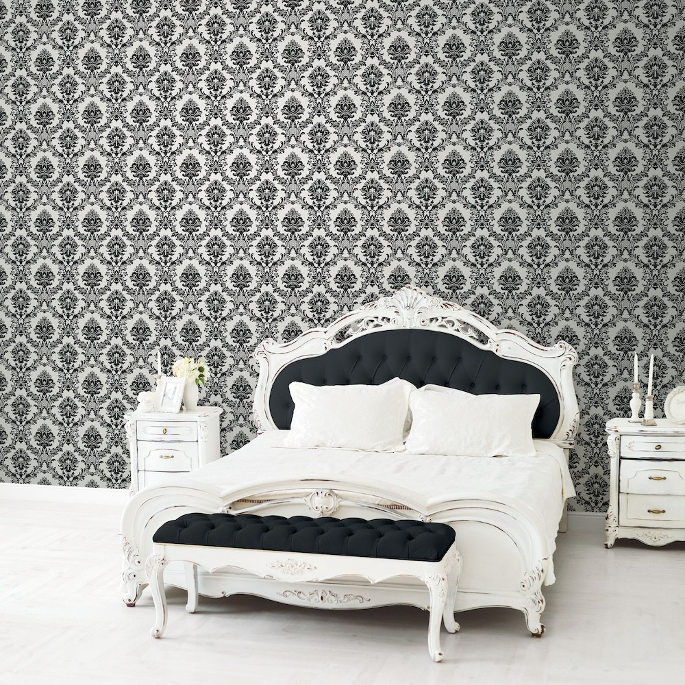 A bold and elegant damask. A timeless and modern floral damask with a trellis design. Inspired from the past but graphic in print.