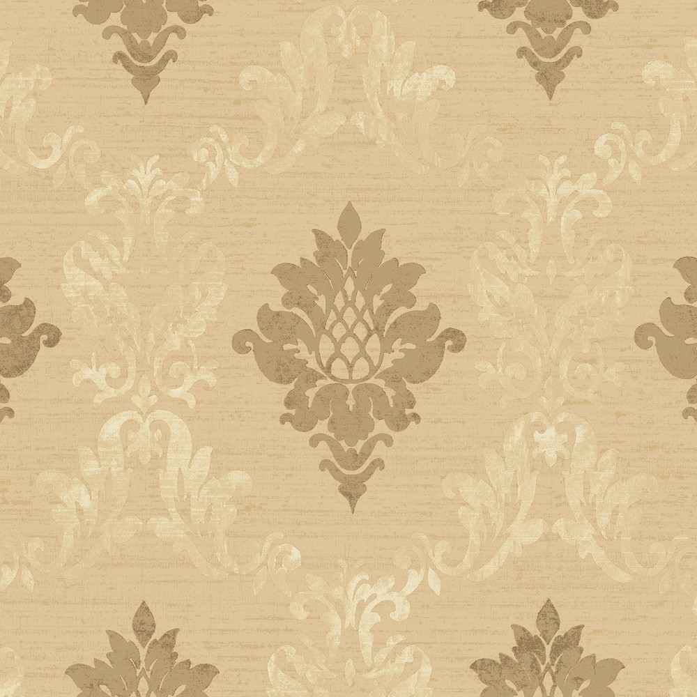 This damask is dramatic and has lush fabric looking textures in the background. Scrollwork forms a trellis around them creating a visual of beauty. The embosses with each of the areas of texture within the design and background complement one another well.