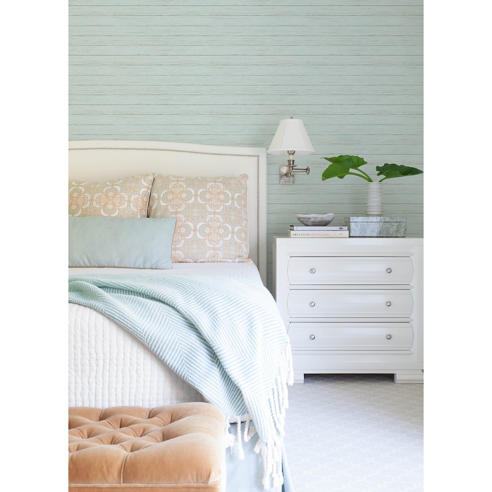 Coastal meets farmhouse in this charming shiplap wallpaper. The wood planks are painted a pale blue, the raised inks mimicking the texture of the distressed wood. Ozma is a prepasted, acrylic coated paper wallpaper.