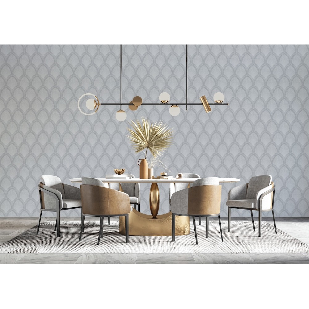 Nouveau Scallop is the perfect way to add a timeless wallpaper to any room in the home, this large-scale geometric pointed arch is perfectly placed upon a mottled background for an elegant geometric look. Each arch contains radiating lines with gradual shading, giving it a botanical effect. Finished off with a lustre this wallpaper will add a regal look to any room in your house.