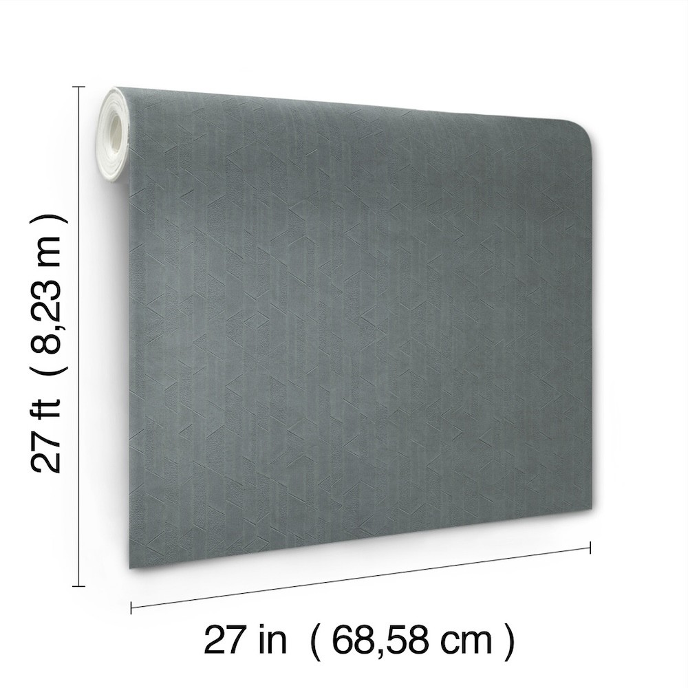 The distinctive patterning of Verge defines columns of alternating rough and smooth triangles and clean fold lines to create light play across a field of contemporary texture and color, shown in dark teal slate. This Verge Wallpaper measures approximately 27 inches wide by 27 feet long, measuring approximately 60.8 square feet per roll. The glamour of metropolitan life inspires this sophisticated collection of classic, geometric, and textural High Performance Type II products.