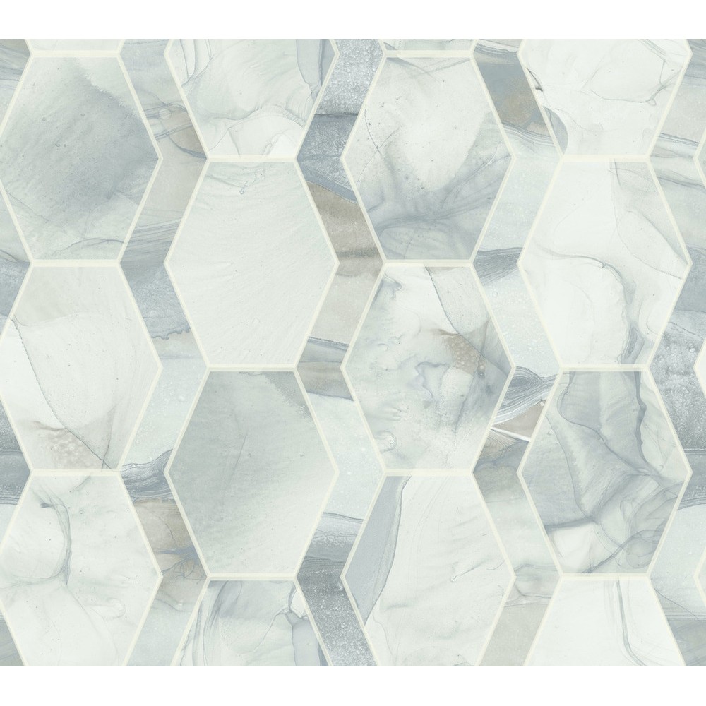 Natural mineral colors and marbled veining define a honeycomb of hexagon tiling in pattern Earthbound.