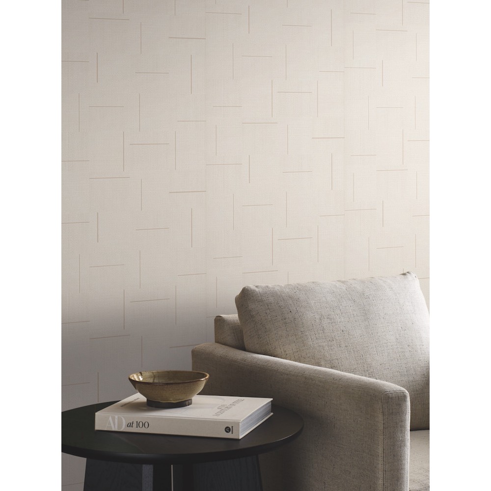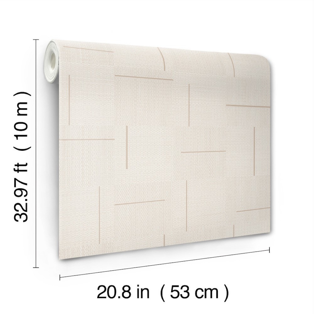 This elevated checkerboard design alternates between delicate taupe and beige squares accented by muted gold bars. This Geo Block Weave Wallpaper measures approximately 20.8 inches wide by 33 feet long, measuring approximately 57.2 square feet per roll. The second companion volume in this popular series showcases textural wallcoverings as the anchoring layer and personal statement that wraps space with signature style.