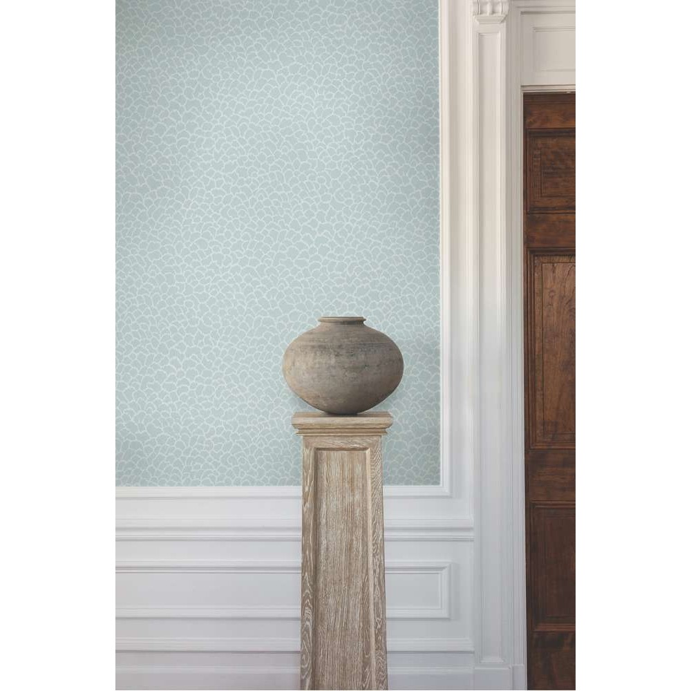 The wildlife and underbrush of the African savanna inspire Nadie's organic textural abstract pattern, shown here in powder blue with white.