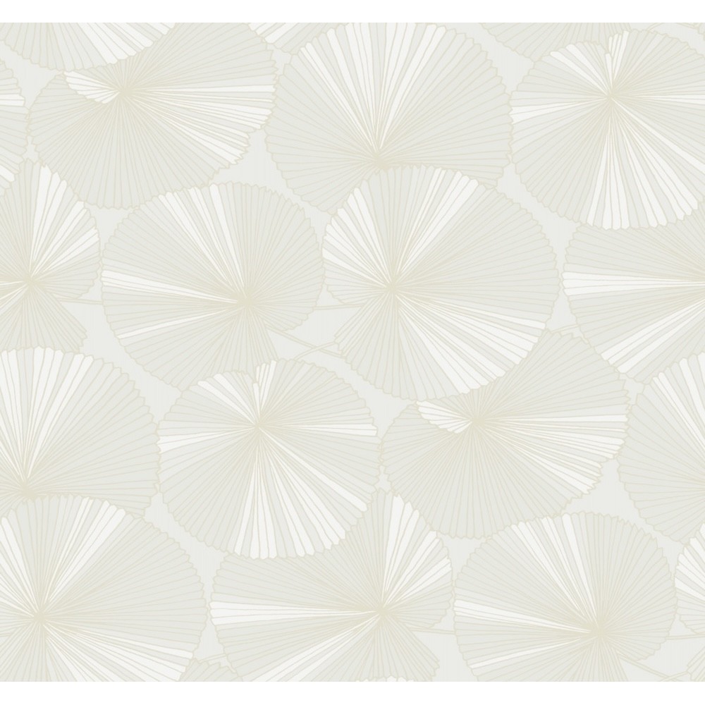The circular leaves of this flowering aquatic herb emerge and float across the stillness of the water's surface in the pattern Layered Lily Pads, shown in white with champagne gold. This Layered Lily Pads Wallpaper measures approximately 27 inches wide by 27 feet long, measuring approximately 60.8 square feet per roll. Finding beauty in this extraordinary organic world.