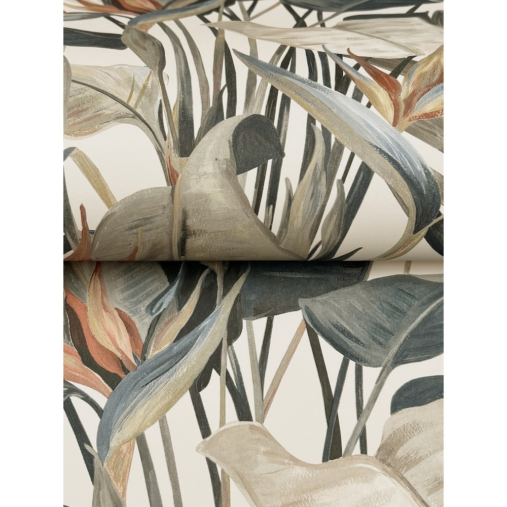 Painterly banana leaf palms and open-air gazebos set the stage for the colorful luxury resort feel of pattern Tropical Cabana, shown in neutral beige with teal and grey on a cream ground. This Tropical Cabana Wallpaper measures approximately 20.5 inches wide by 33 feet long, measuring approximately 56.4 square feet per roll. Finding beauty in this extraordinary organic world.
