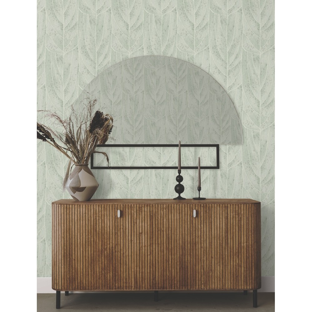 The branching veins of pattern Dicot Leaf become a framework for small mosaics of variegated color that fill in and give dimension to this nature- inspired modern botanical pattern, shown in spa blue with warm white. This Dicot Leaf Wallpaper measures approximately 20.5 inches wide by 33 feet long, measuring approximately 56.4 square feet per roll. Finding beauty in this extraordinary organic world.