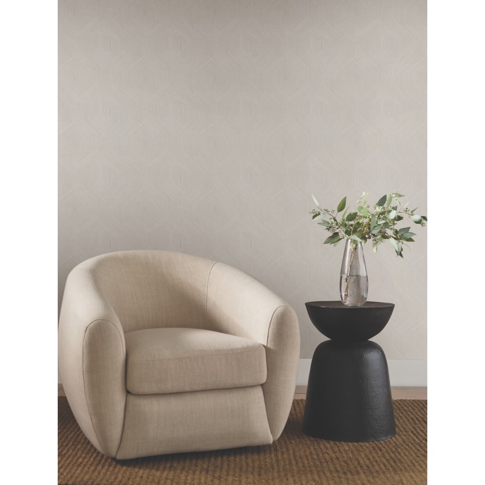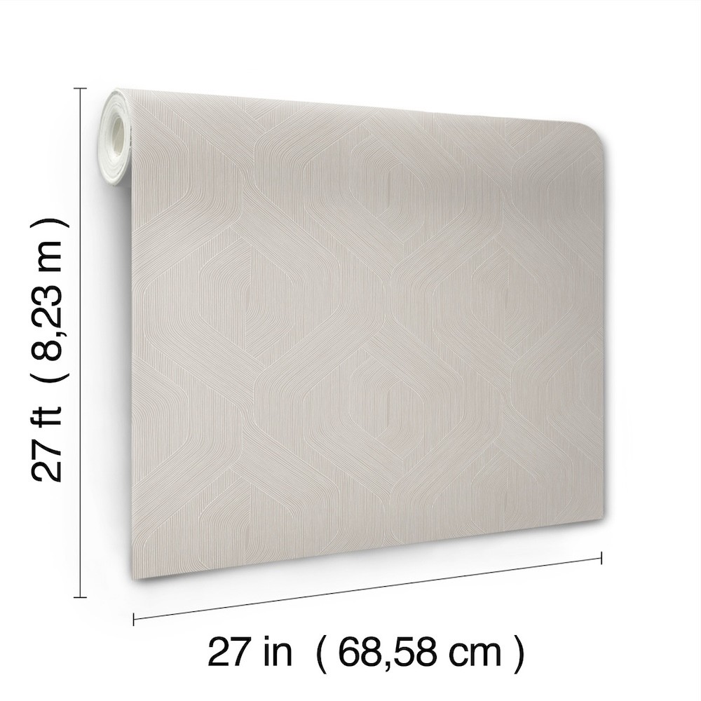 Meandering deeply textural lines form a flexible intermix of abstract beauty and organic shape within the motion of pattern Fine Line Geometric, shown in taupe brown with white. This Fine Line Geometric Wallpaper measures approximately 27 inches wide by 27 feet long, measuring approximately 60.8 square feet per roll. Finding beauty in this extraordinary organic world.